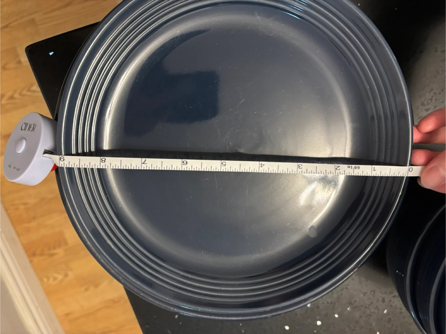A set of eight navy blue plates and matching bowls. The plates measure approximately 9 inches , 11inches diameter and the bowls are about 6 inches in diameter. This dinnerware set is great for everyday use or special occasions!