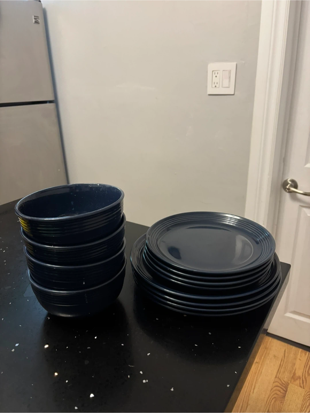 Set of 8 Navy Blue Plates and 4 Bowls