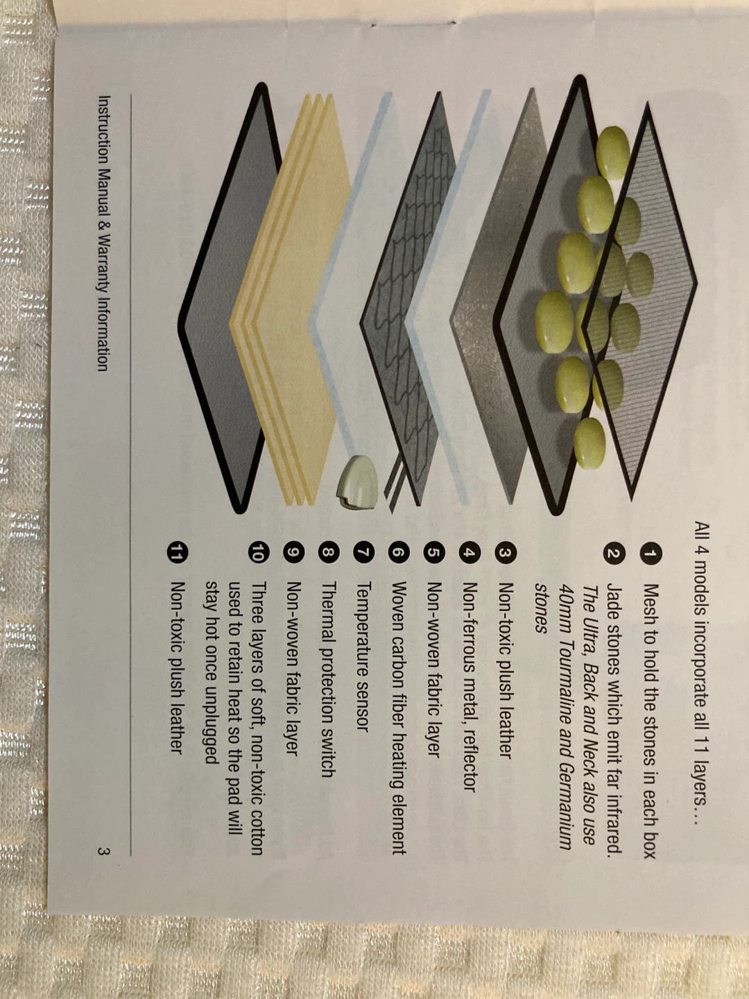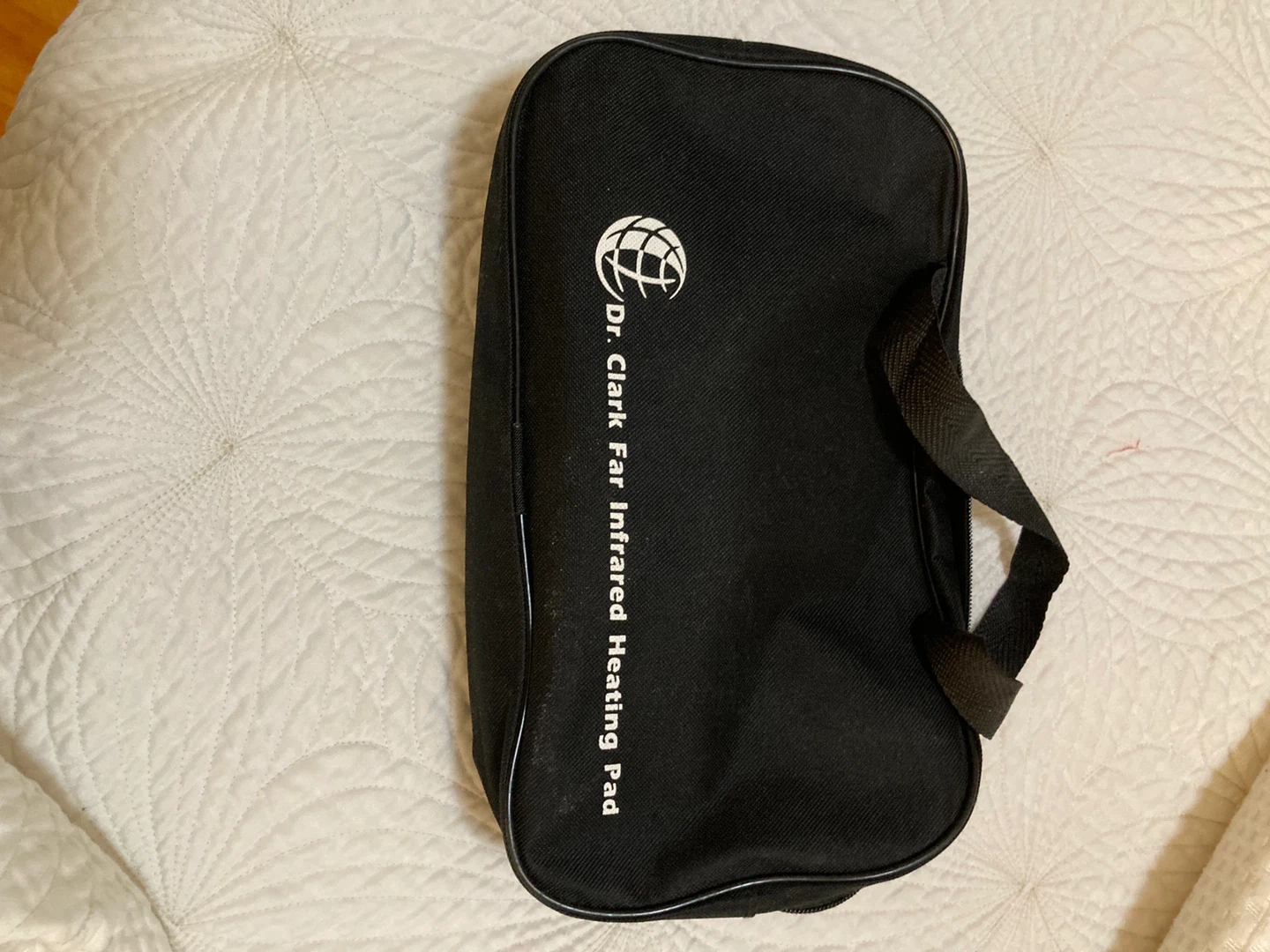 Dr. Clark Far Infrared Heating Pad with digital controller. It has adjustable heat and timer settings up to four hours. The pad penetrates deeply for heat therapy.