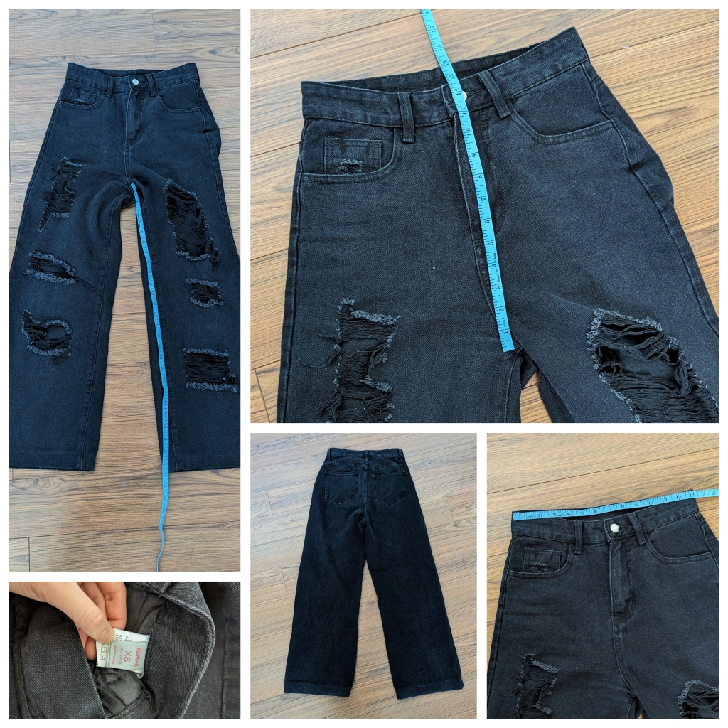 4: $12 Romwe high rise, black distressed wide leg jeans size 2 (fits shorter)