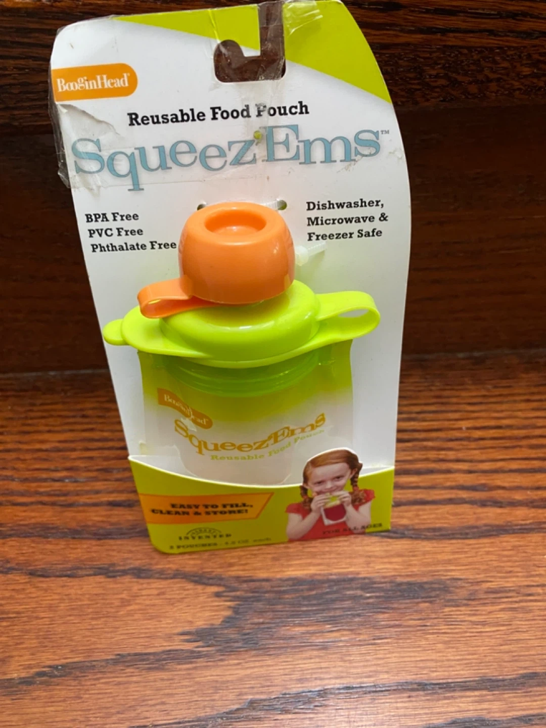 New BooginHead SqueezEms reusable food pouches are BPA, PVC, and phthalate-free. They're dishwasher, microwave, and freezer safe! Easy to fill, clean, and store. Includes two 4.2 oz pouches. Suitable for all ages.
