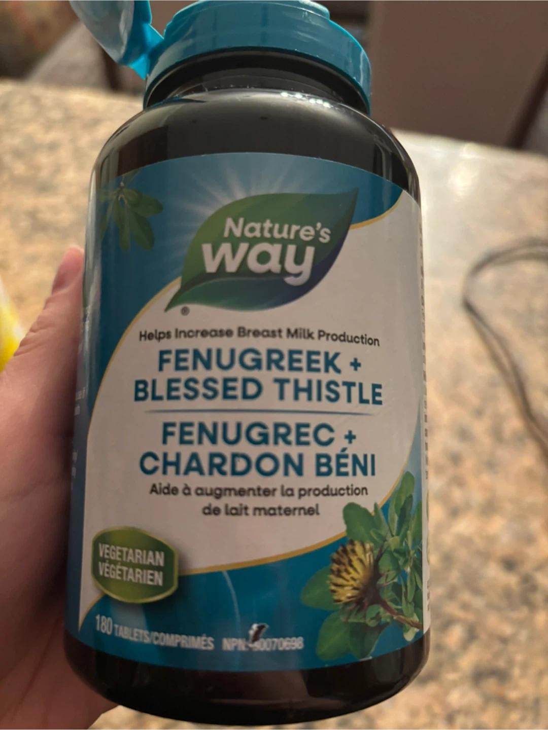 Comes with a bunch of extra parts and a free manual pump as well (not pictured). I’m also including a sealed bottle of fenugreek and milk thistle supplement to increase milk supply