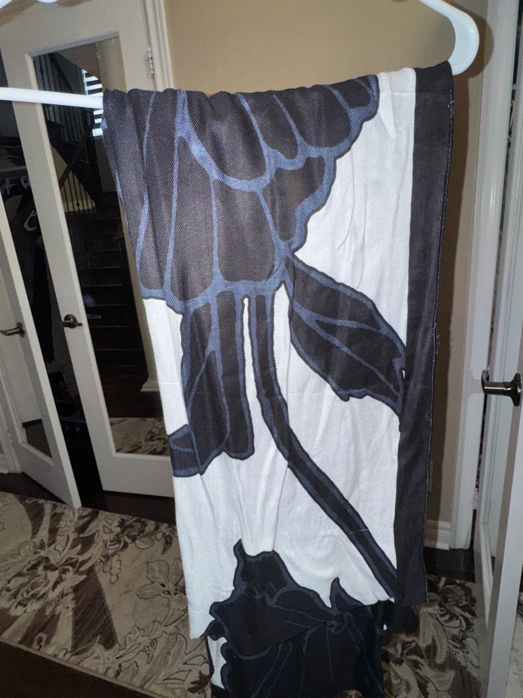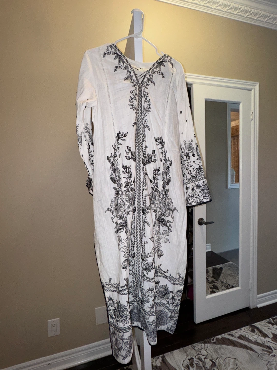 3pc White Linen shirt trouser with Black Floral Embroidery