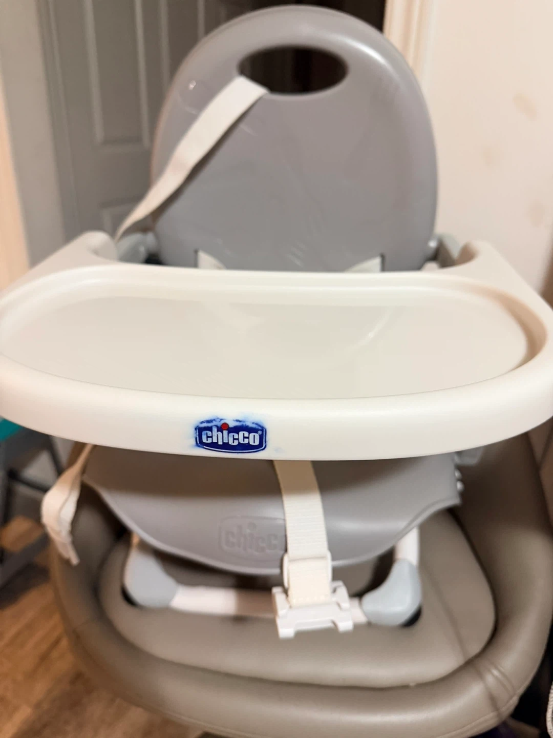Selling a Chicco baby high chair in great condition! It's perfect for feeding time and keeping your little one secure. The high chair is grey and features a removable tray and safety straps. It's easy to clean and a great addition to any home with a baby or toddler