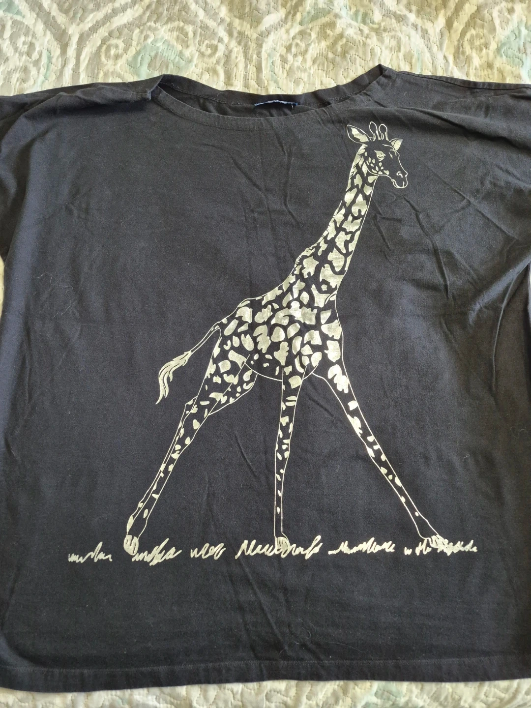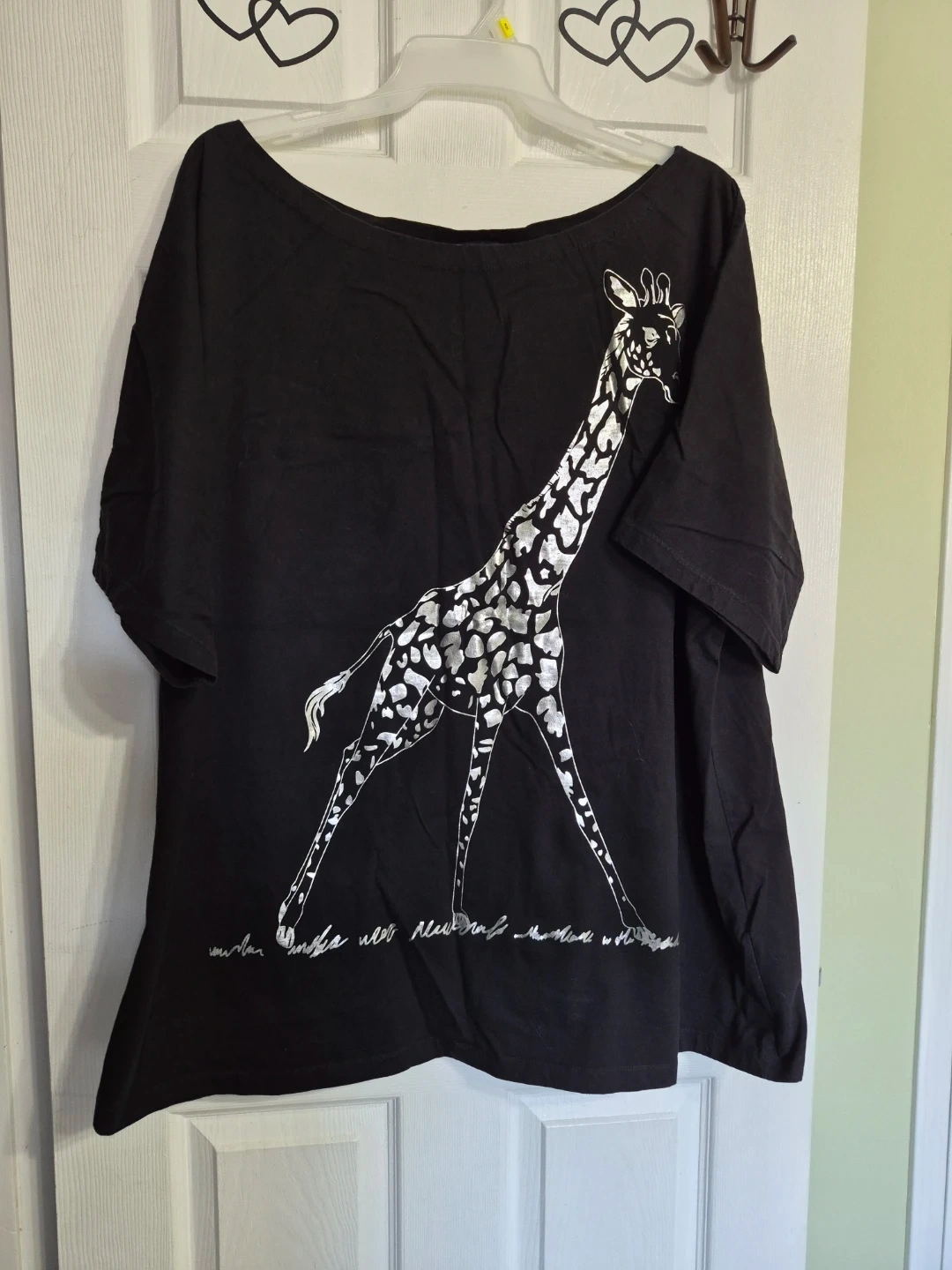 Penningtons Size 3X 100% Cotton Black Top with Large Giraffe & Wide Neck Excellent Used Condition please see all pictures