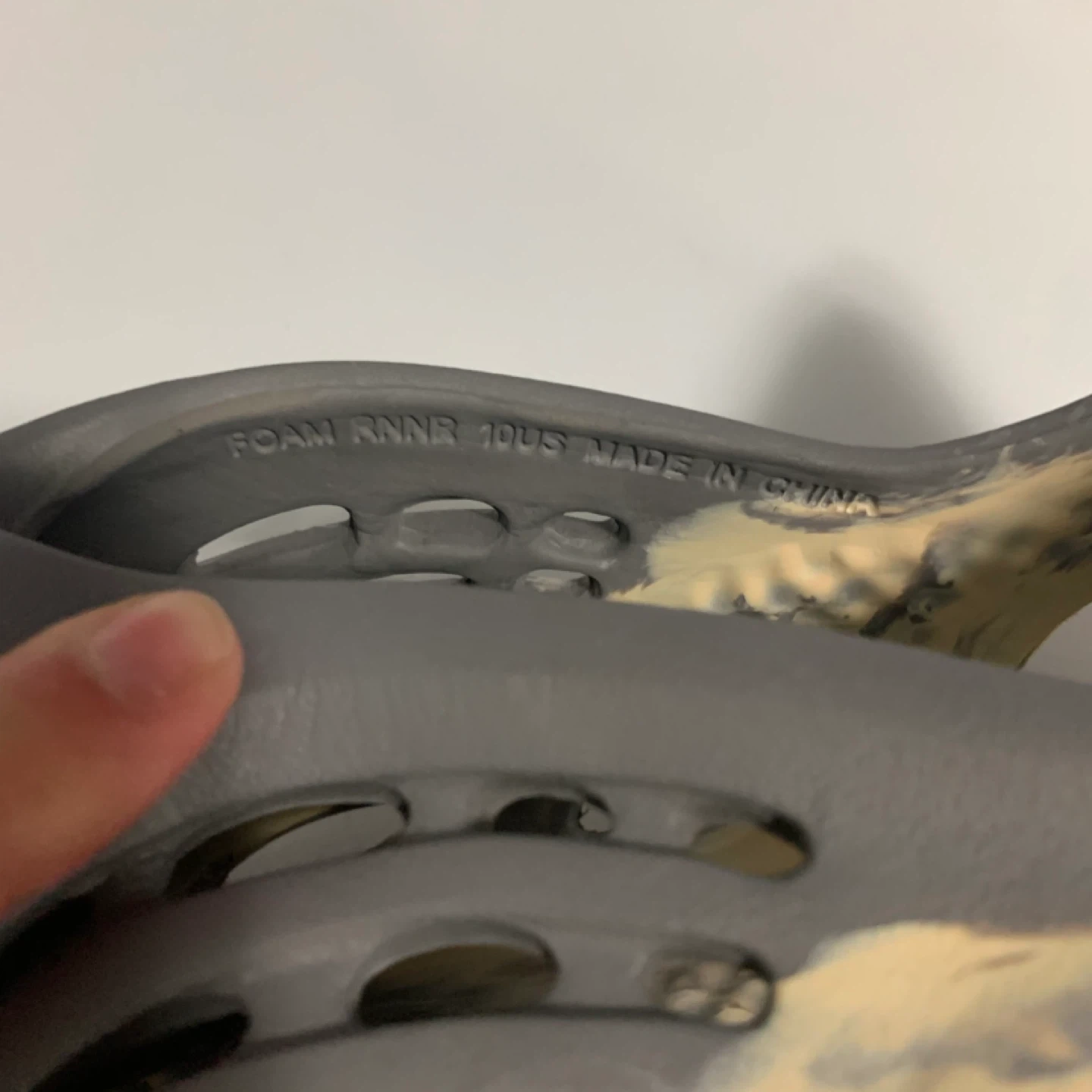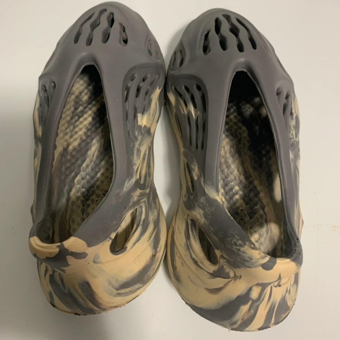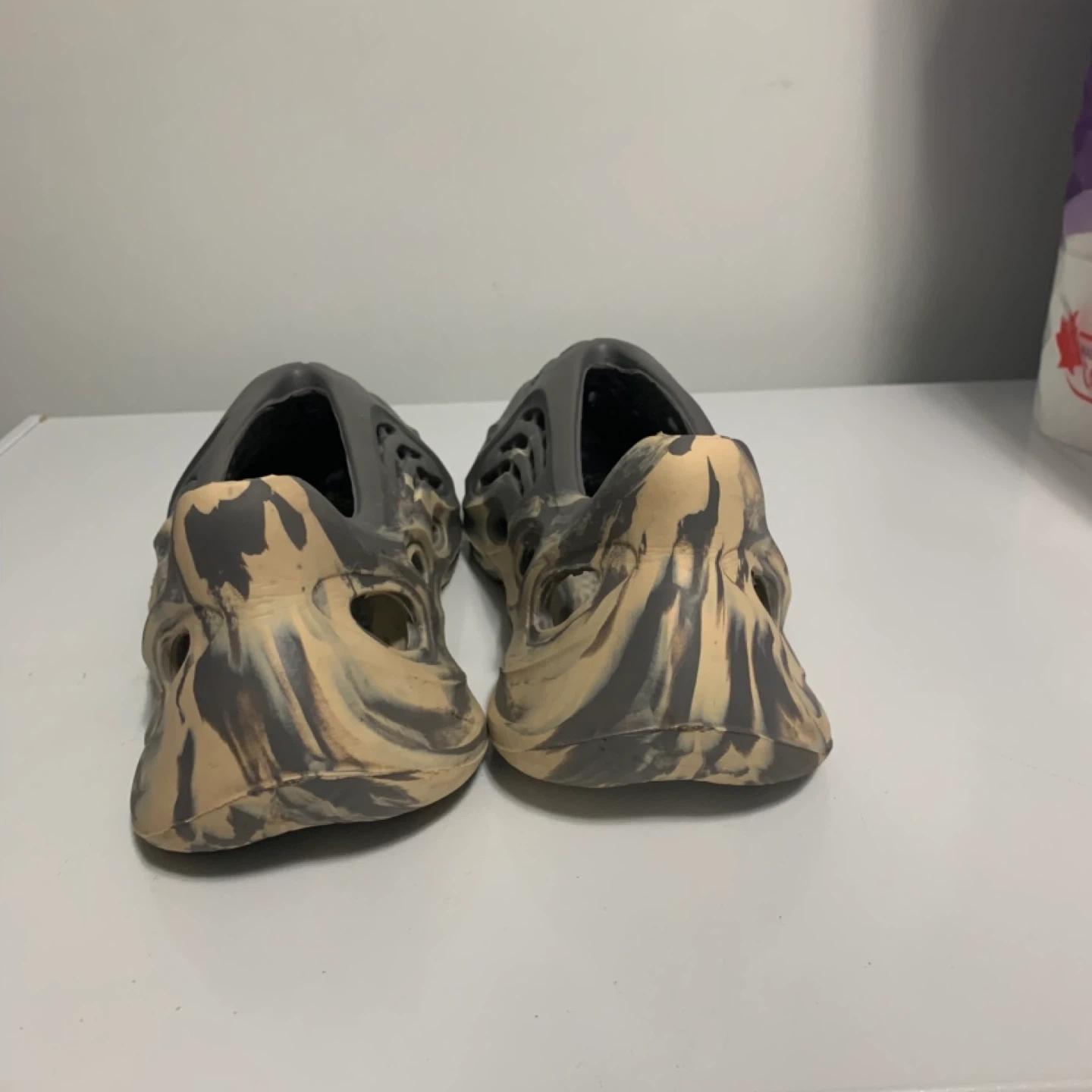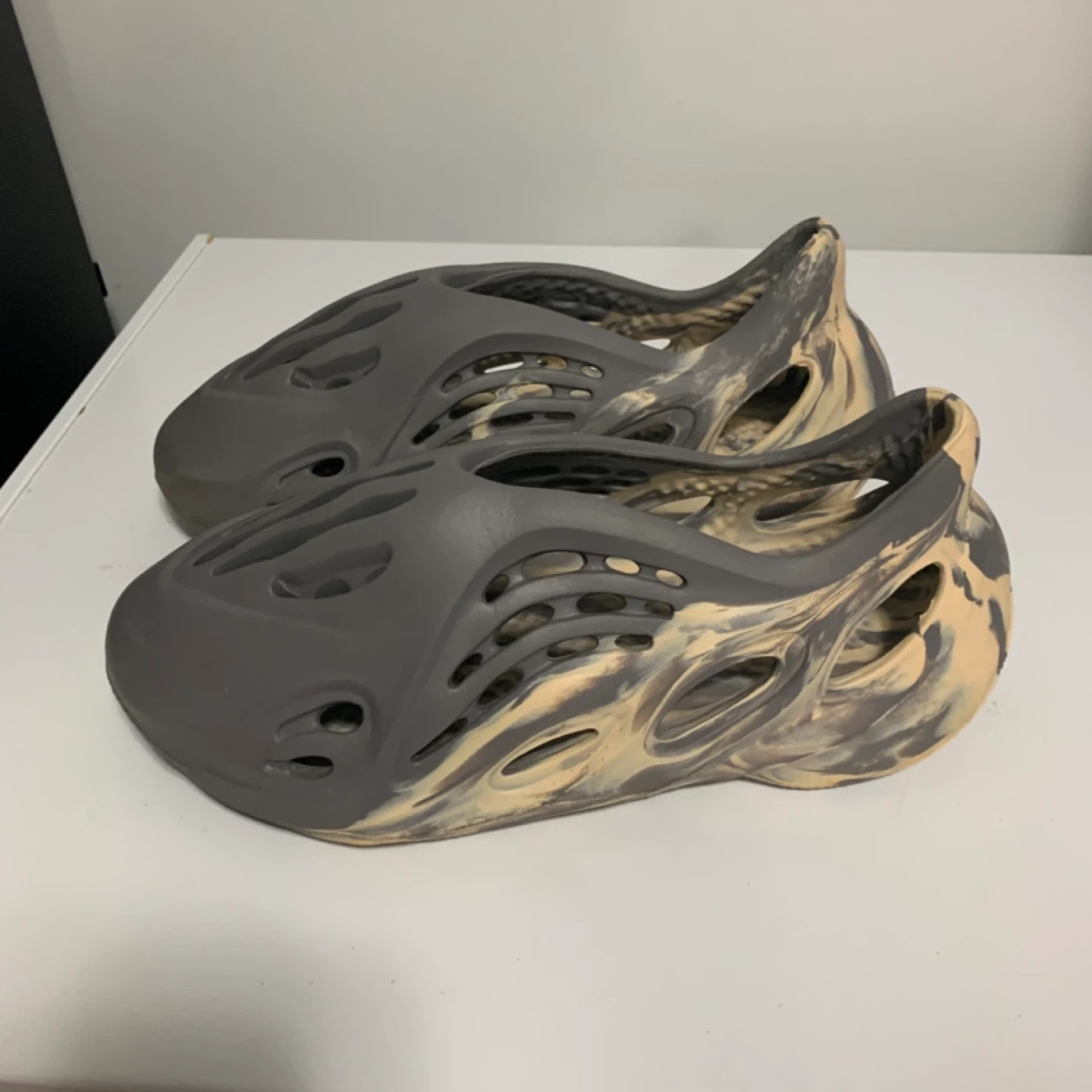 These are Yeezy Foam Runners in size 10 US. They're made with a unique foam material and feature a distinctive sculpted design. Great for casual wear!