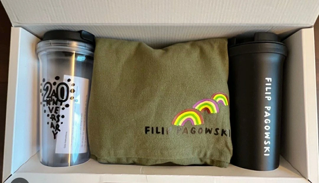 Selling a McCafé x Filip Pagowski 20th Anniversary tumbler set! It includes two tumblers (one clear, one black) and a tote bag. The box is included as well. Great for collectors or anyone who loves a good coffee on the go