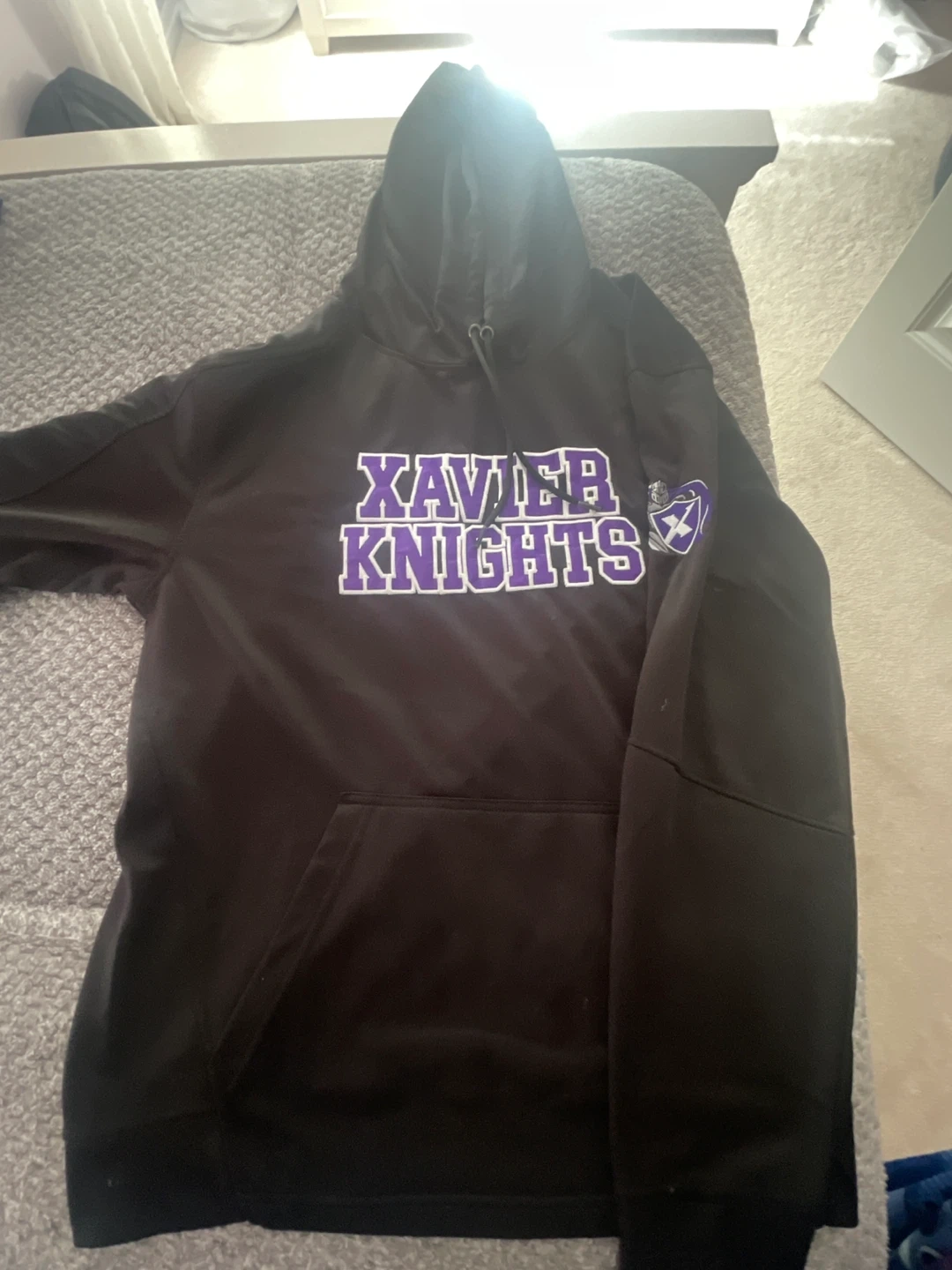 24Selling a McCarthy Uniforms hoodie with the Xavier Knights logo. It's a size medium and in great condition! Perfect for staying cozy.
