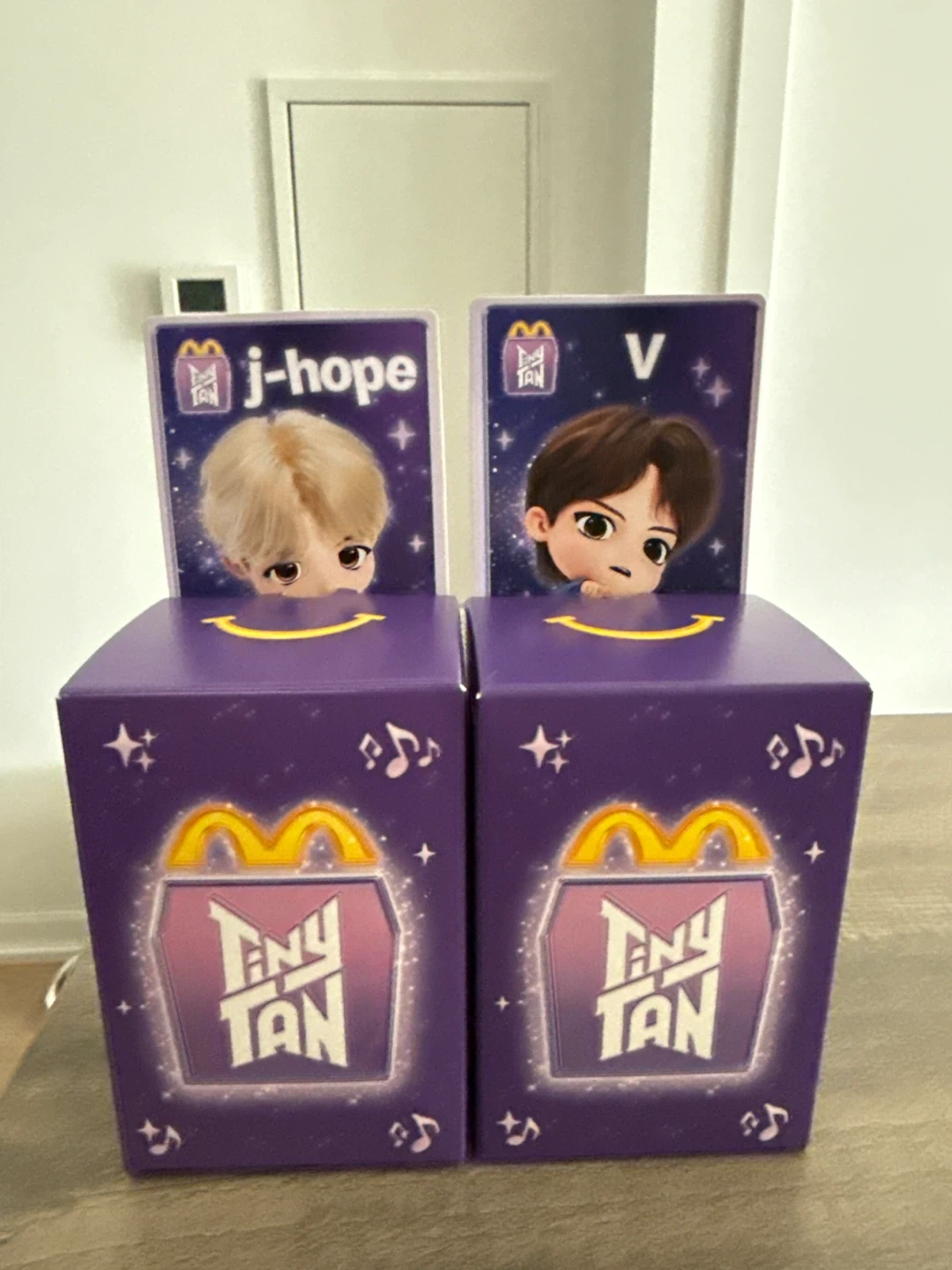 419Selling two McDonald's BTS TinyTAN Happy Meal boxes. One box features J-Hope, and the other features V. Great for any BTS fan! 5 for both