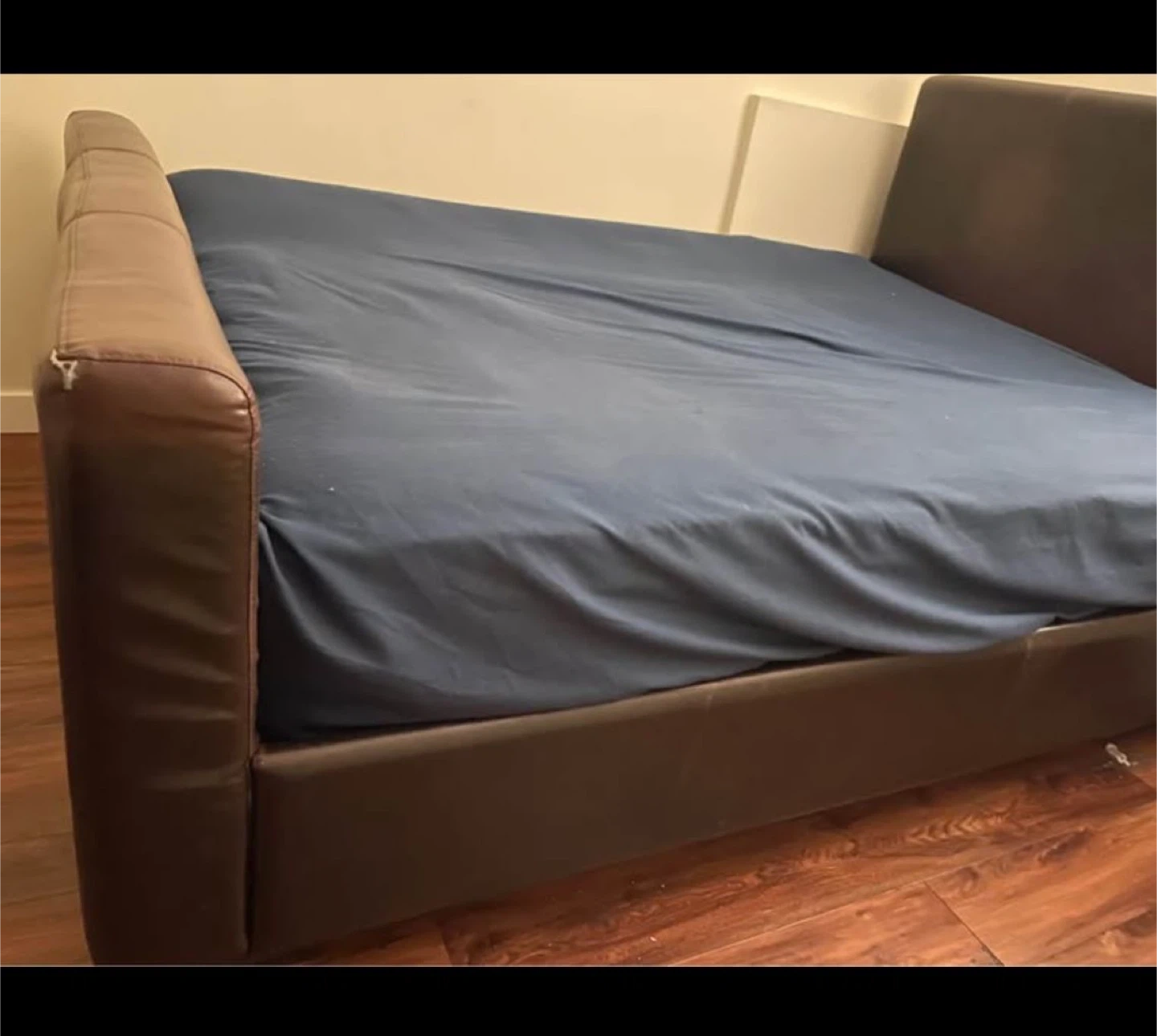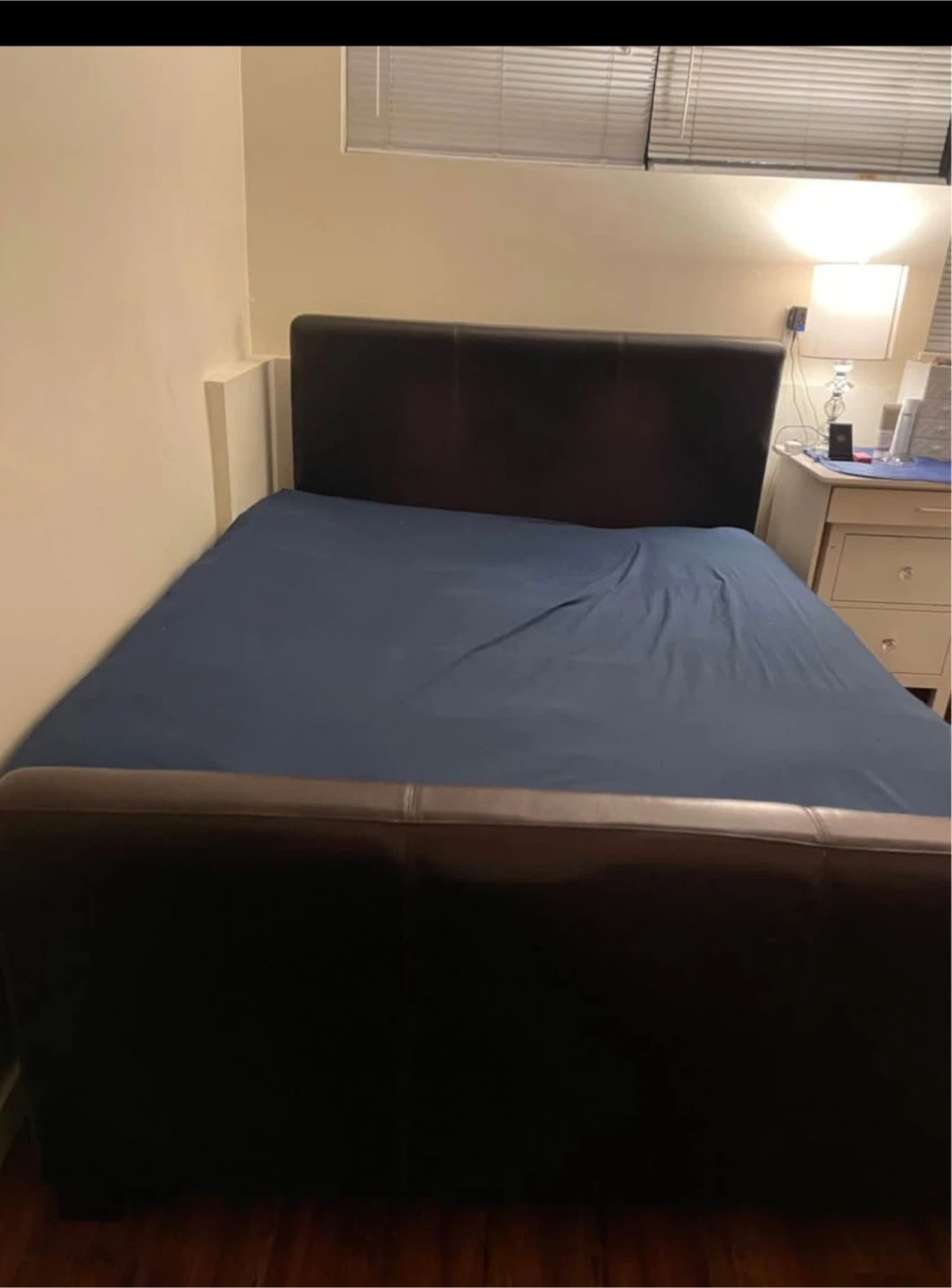 Selling a brown leather bed frame. It's in good condition and would be a great addition to any bedroom. The size is a Double. If you're interested, please send me a message!