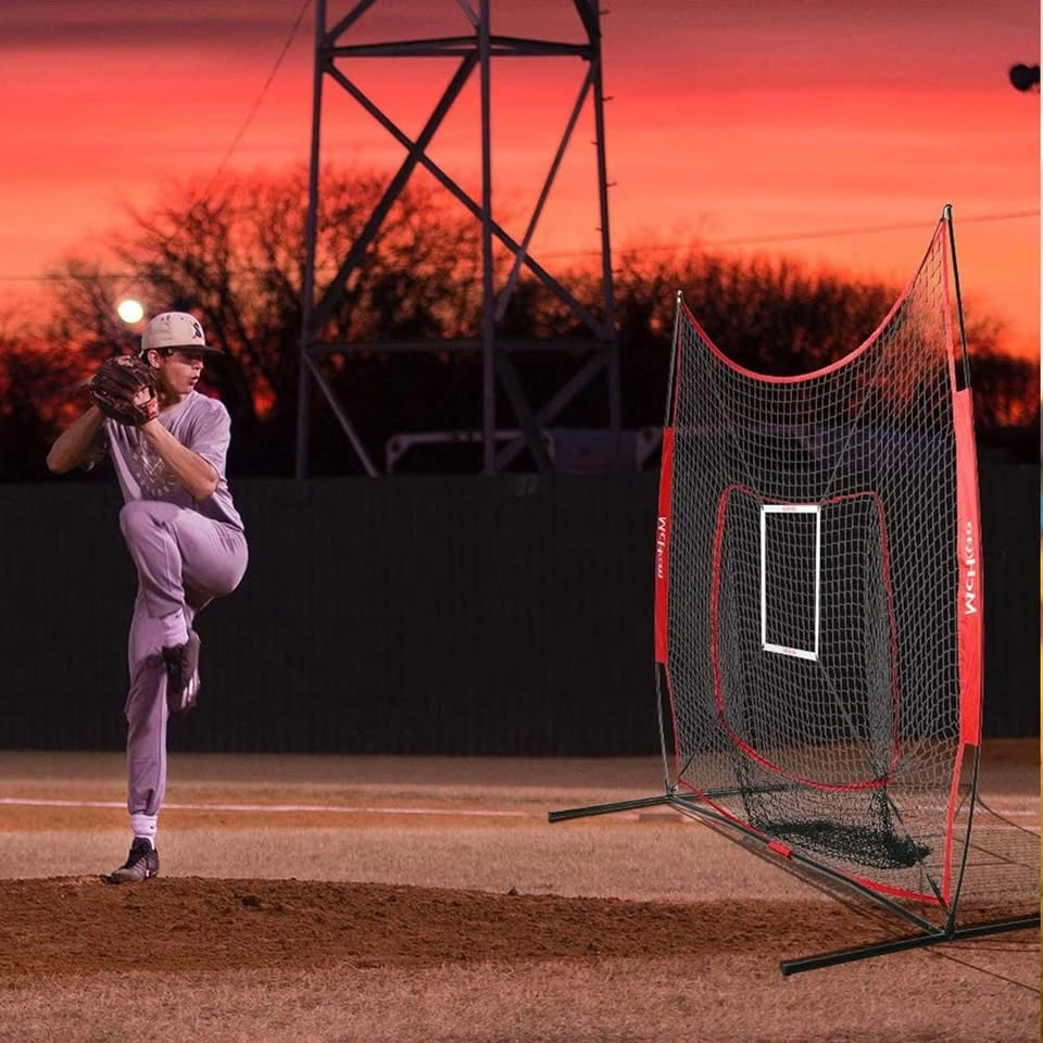 New - Open Box McHom 7' x 7' Baseball & Softball Practice Net Set (includes Carrying bag). Note Tee not Included. With a steel base and ground stakes, the McHom is stable as well as durable. Our net is sure to withstand anything you throw or hit at it! Suitable for players of all levels. With our 7' x 7' baseball & softball net, you can spend less time chasing balls and more time improving your skills! Our net can be packed in a carrying bag for easy transportation and storage, weighing 18.4 lbs. Our net is perfect for indoor/outdoor use and can be assembled with no tools in minutes, allowing you to practice anytime, anywhere.