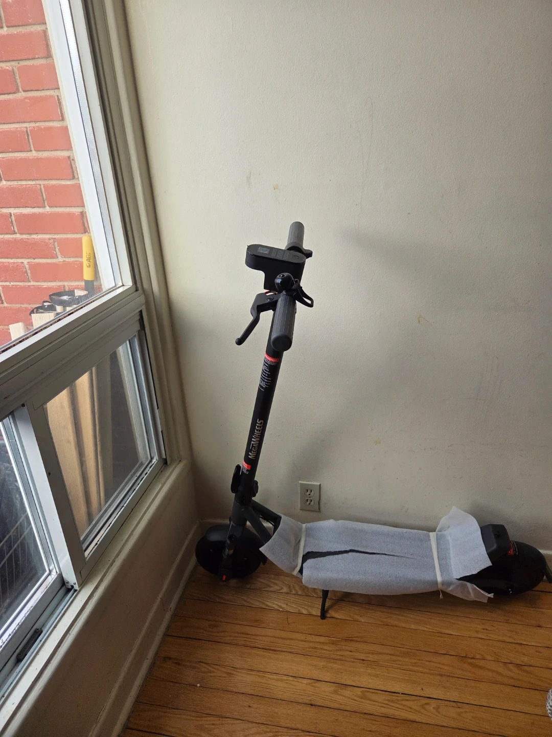 MEGAWHEELS electric scooter is black. It's in good condition and comes wrapped in protective foam. Get around town with ease!