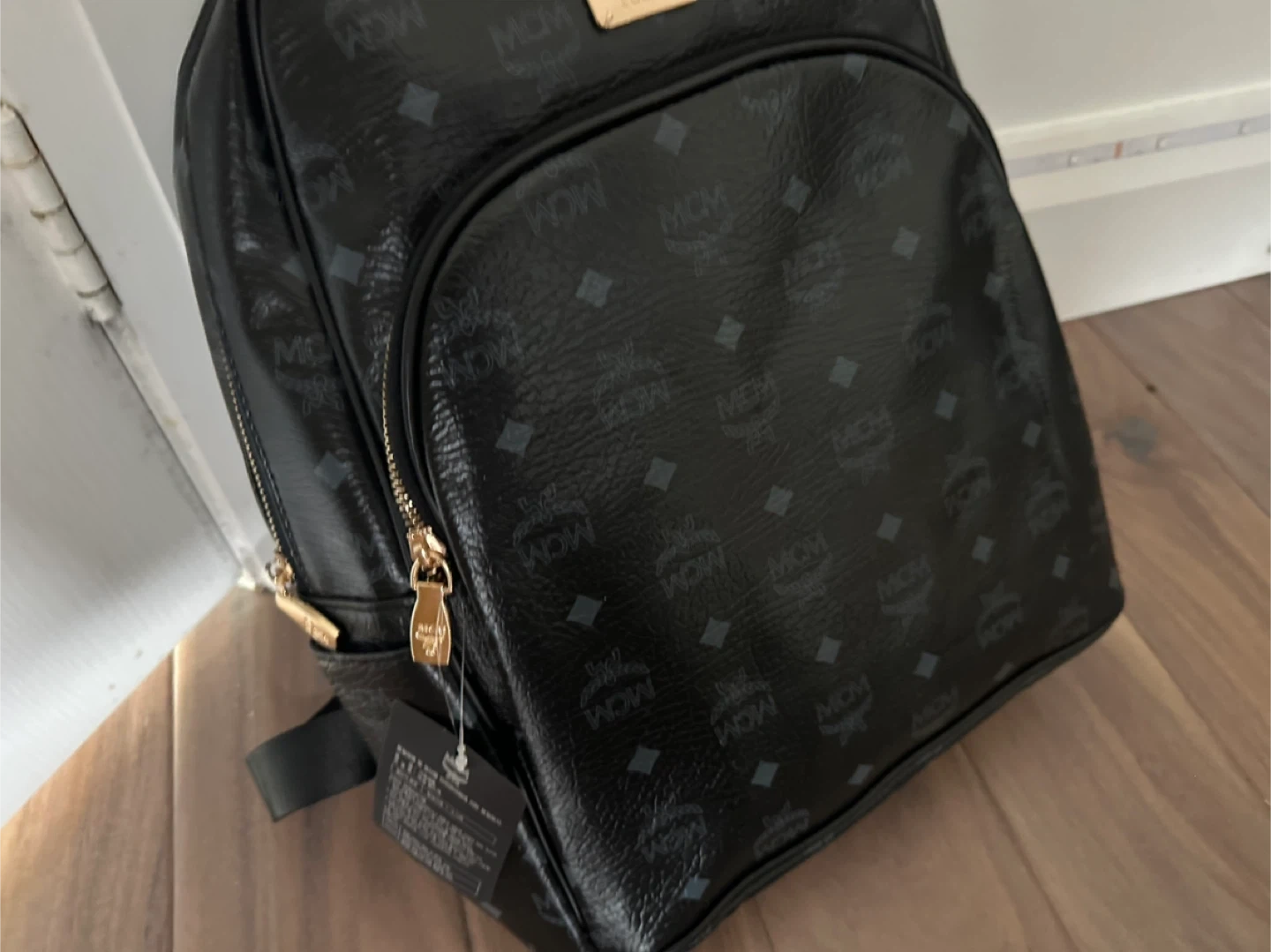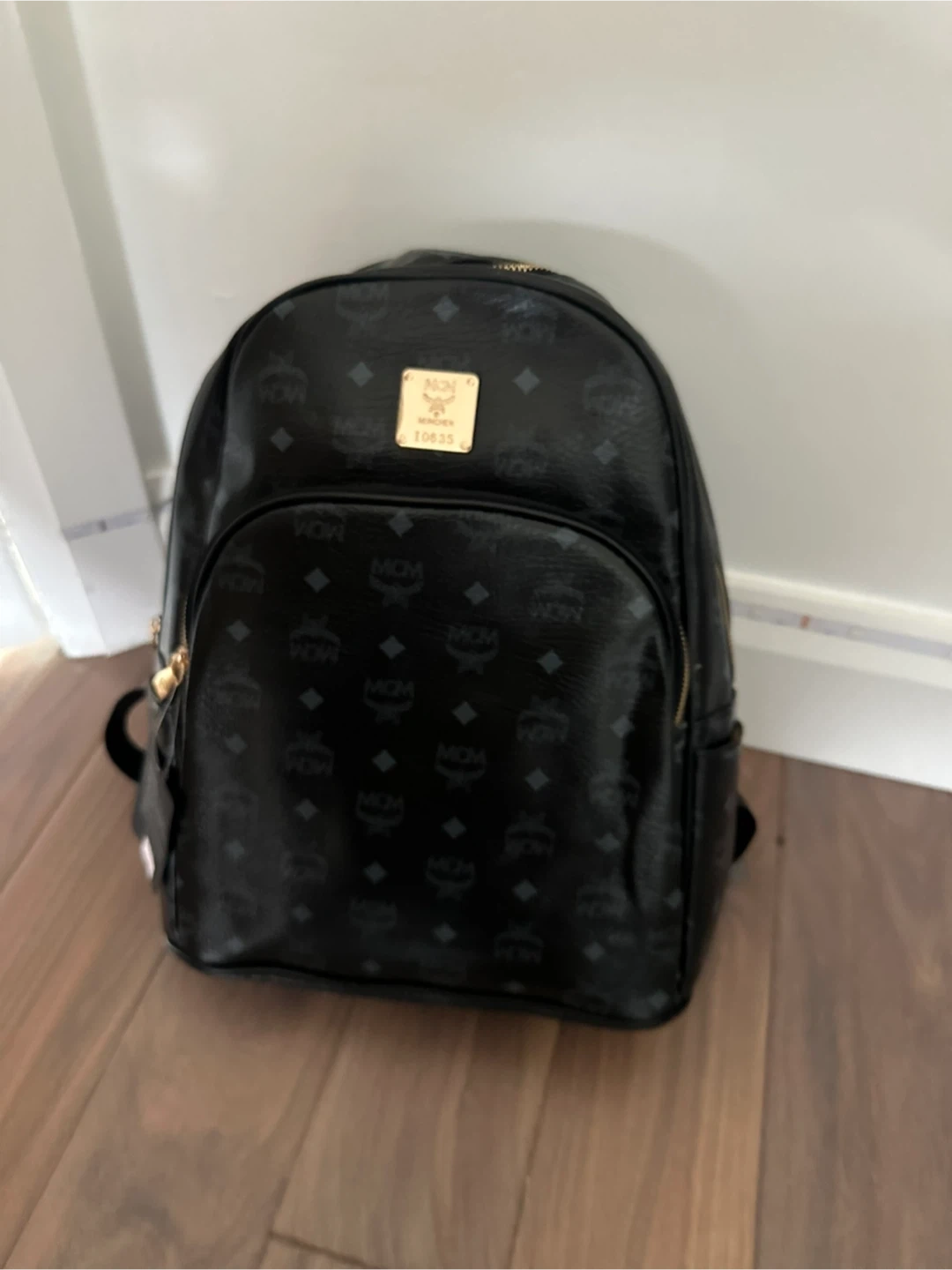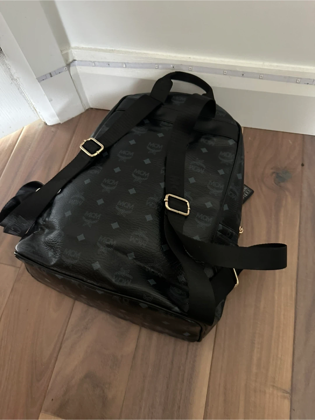 Selling a black MCM backpack. It's in great condition and ready for a new home. The backpack features the classic MCM logo pattern throughout. Perfect for everyday use or travel!