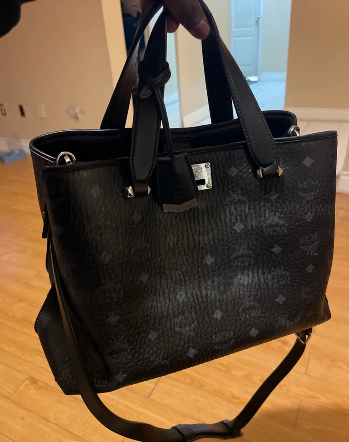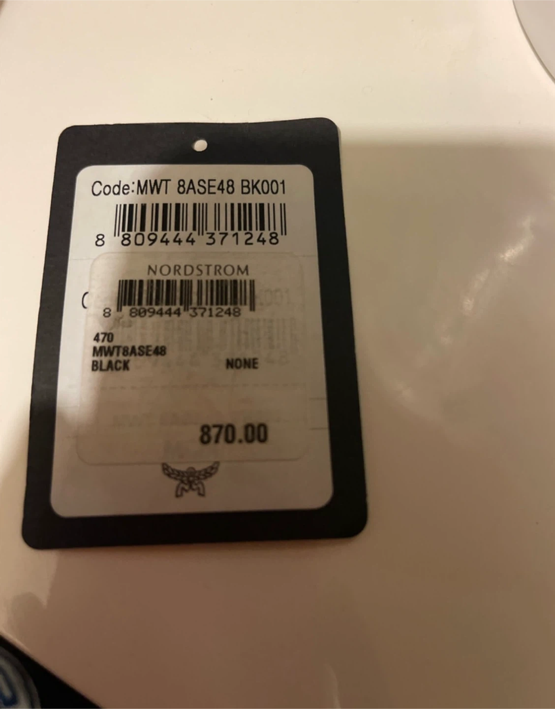 10Selling a black MCM tote bag. It's in great condition and has a stylish design. The tag shows the code MWT 8ASE48 BK001, and it was originally bought for $870.00 at Nordstrom
