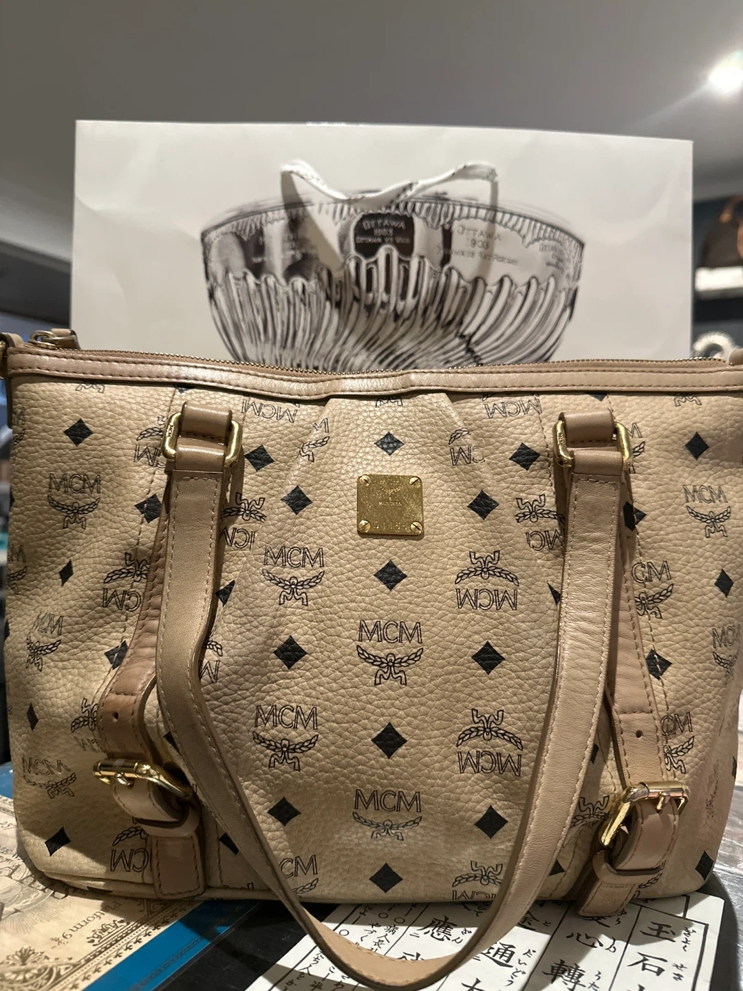 Selling a gently used MCM tote bag. It's in good condition, with the classic MCM logo pattern all over. Perfect for everyday use!