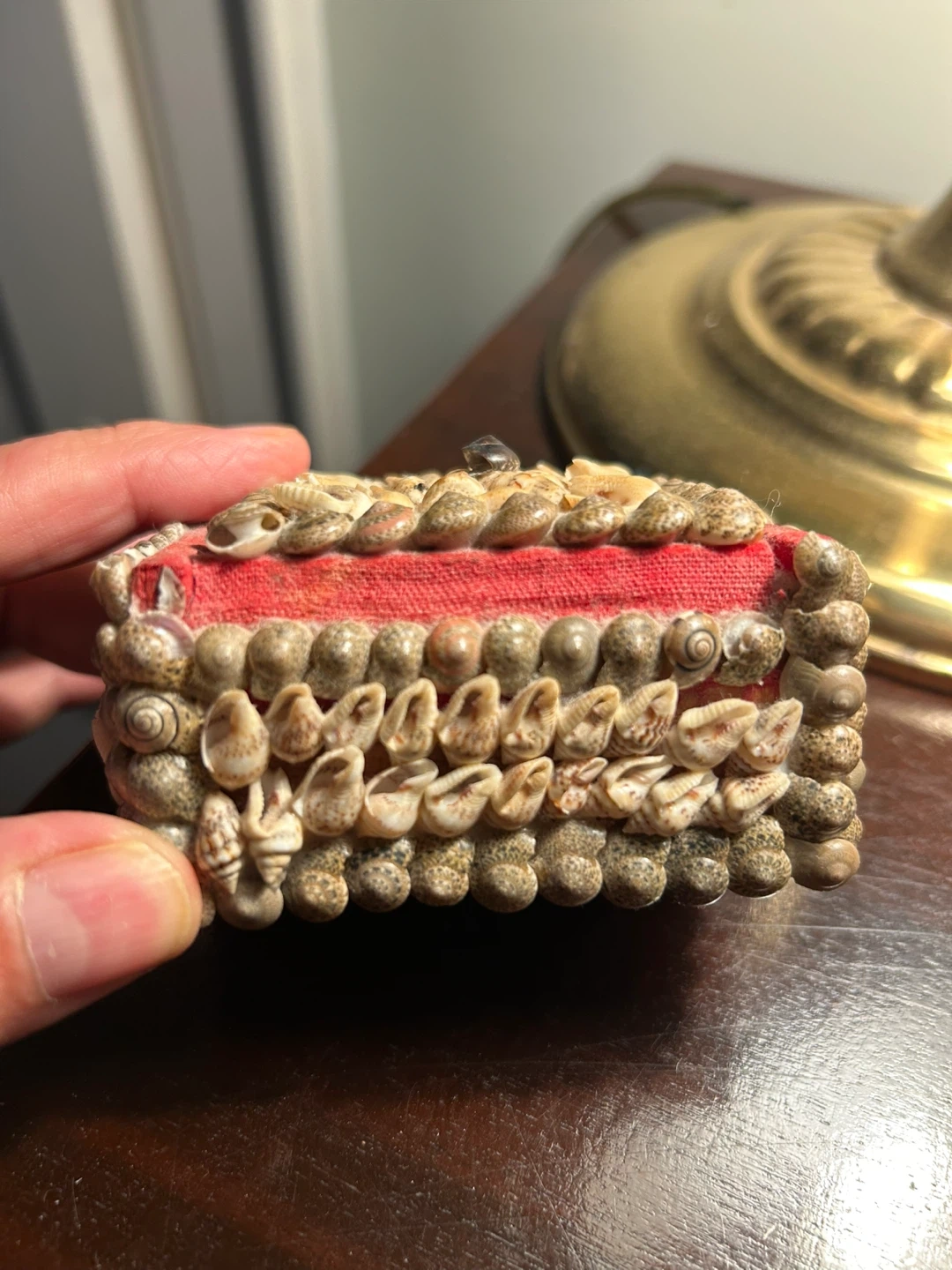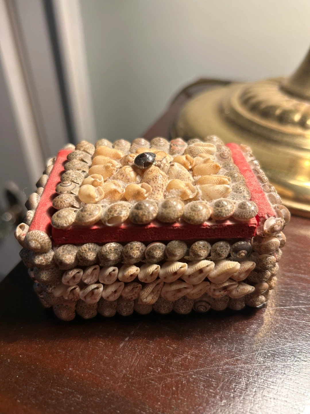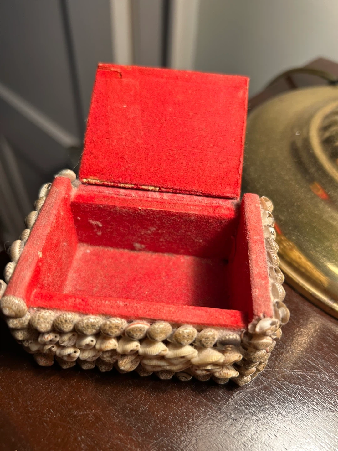 1000+MCM Vintage Seashell Covered Wooden Trinket Box jewellery charming kitsch old fashioned shell Vintage Seashell Covered Wooden Trinket Box. Brown Felt Lined Shell Box. My god mother travelled lots in 60s and this was from her travels Just found it in the attic Small trinket memento box 2 x 3 inches 12.00 Flexible re pickup Just south of Leaside bridge Elmsdale Road M4J 3M3 Donlands O'Connor East York Don Mills south exit off DVP