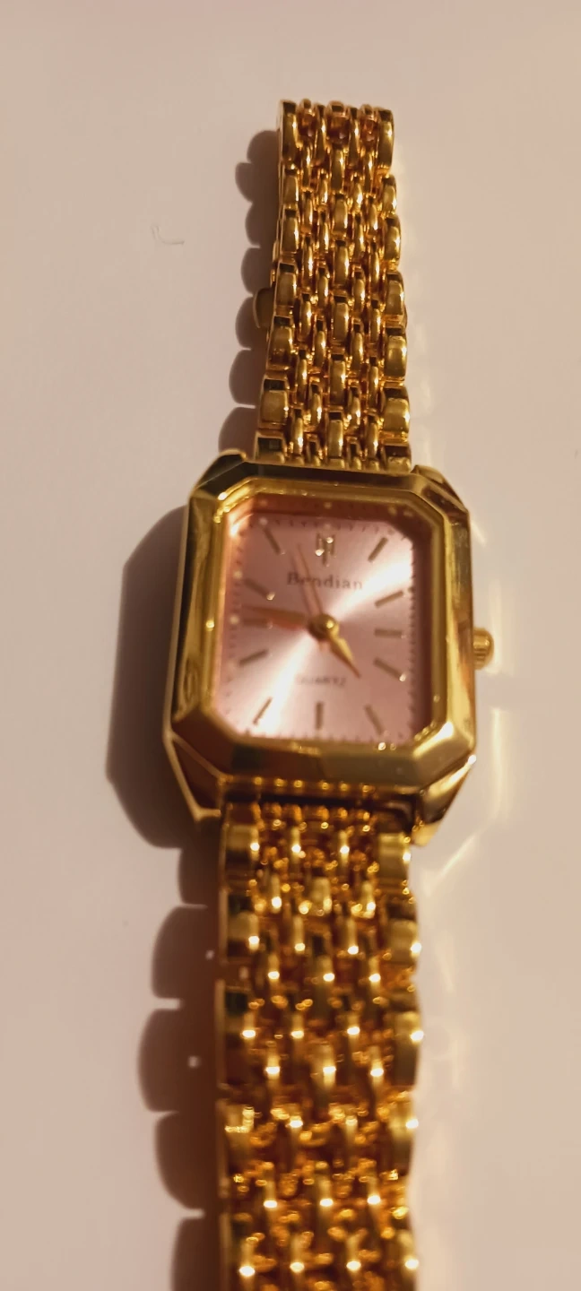 New !!! WORKS PERFECTLY !! This beautiful watch features a gold-tone metal band and a square case with a pink face. It's a quartz movement watch. New !! WORKS PERFECTLY. ALL MY PRICES ARE NEGOTIABLE !!