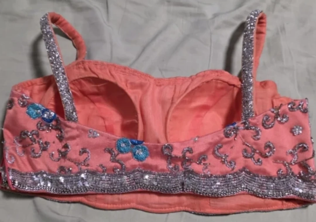 Beautiful peach saree with intricate embroidery and beadwork. Comes with a matching embroidered blouse. Perfect for weddings and parties (Brand New)