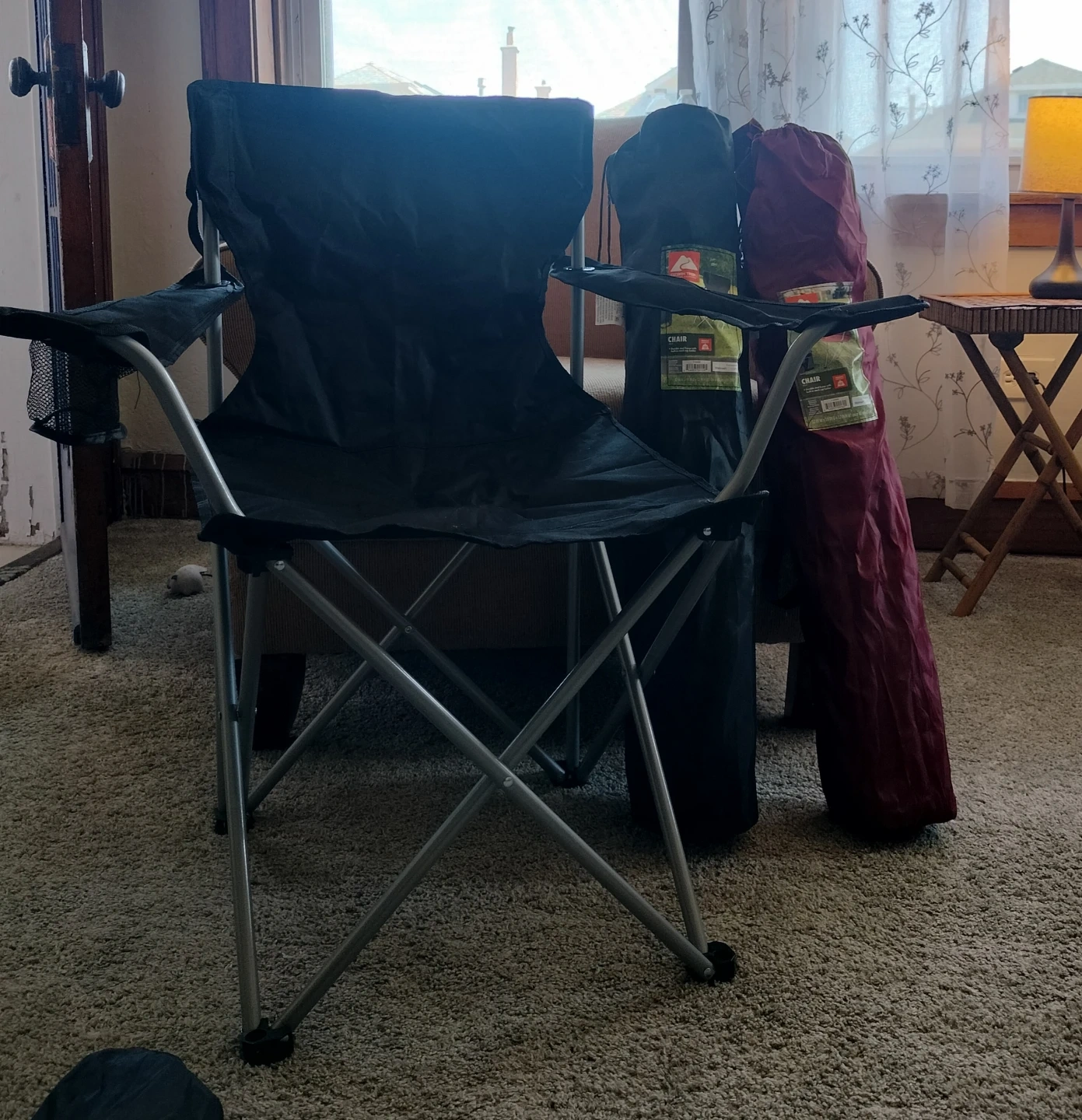 These are Ozark Trail camping chairs, two in back and one in red, comes with their carry bags. Perfect for outdoor activities or extra seating! Used twice.