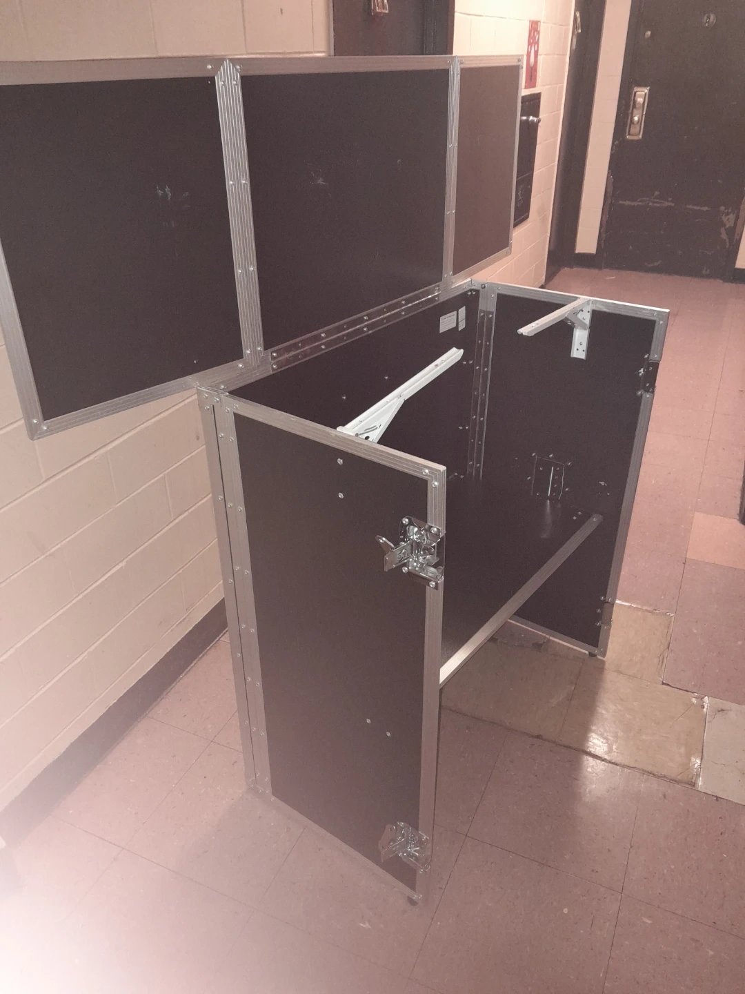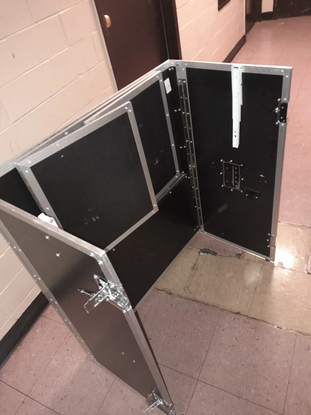 This pre-owned and carefullly used Odyssey flight case DJ stand is black with silver metal trim. It features fold-out tabletop sections and interior shelving. Pick up in Dumbo Brooklyn ,because of the sites location capability ,I wasn't able to mark the pick up on the map since I'm located in staten Island and the item is at my other residence in brooklyn,so the system can only use map for you current location and does not allow to bypass to indicate actual locatik of the item,im sure this bug will be corrected soon, I'm on it .๐