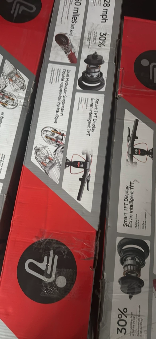 Segway Ninebot MAX G3 electric scooter in original packaging. Features a smart TFT display and dual hydraulic suspension for a smooth ride. Max speed up to 30 mph (48 km/h). This scooter is built for performance and comfort on your commute!