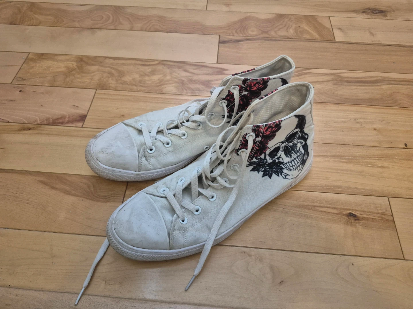 Converse other than the black pair are great design but worn out a bit on the heels, size 11, 25 for each. Black one is a size 10 but never worn, 65