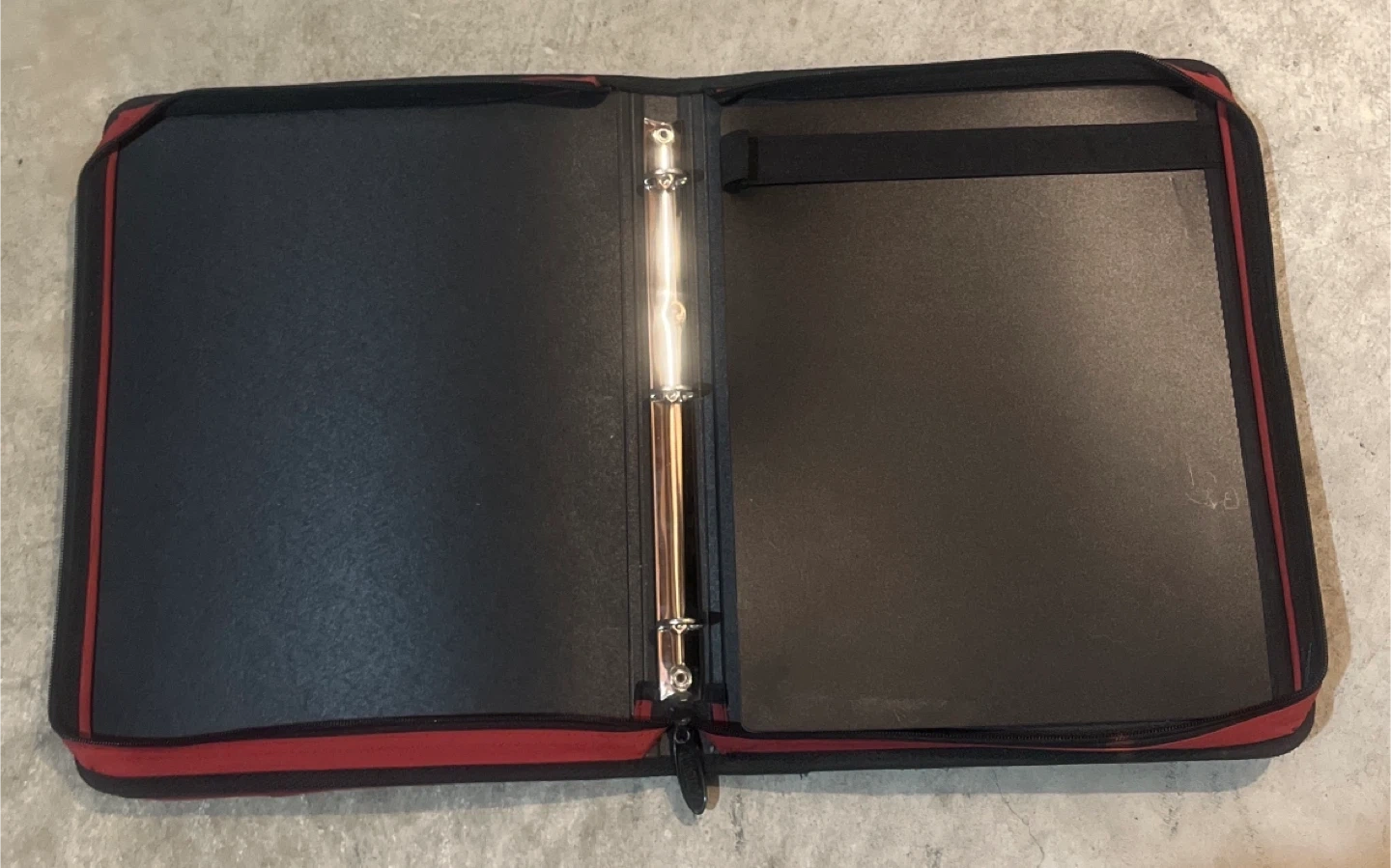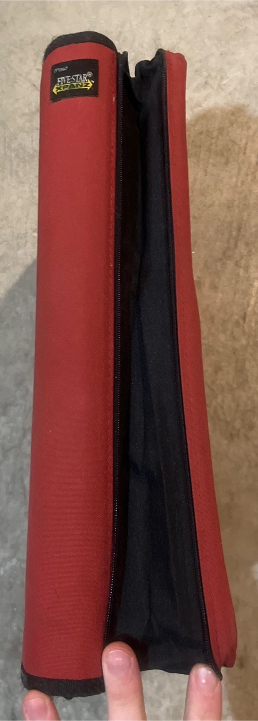 This Five Star folio binder is in a vibrant red colour. It's made of durable fabric with a zippered closure to keep your papers secure. Inside, you'll find standard binder rings and protective sleeves.