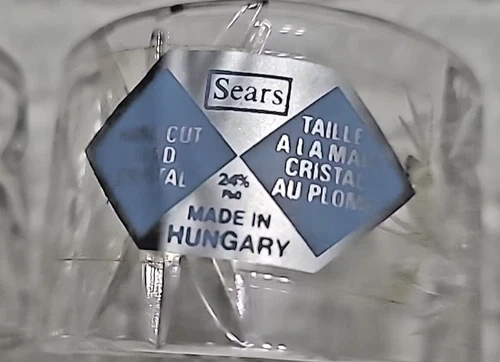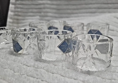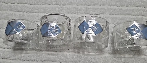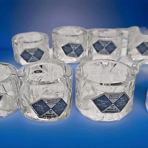Stunning vintage 8-piece hand-cut 24% lead crystal napkin ring set, sold by Sears Canada and made in Hungary.