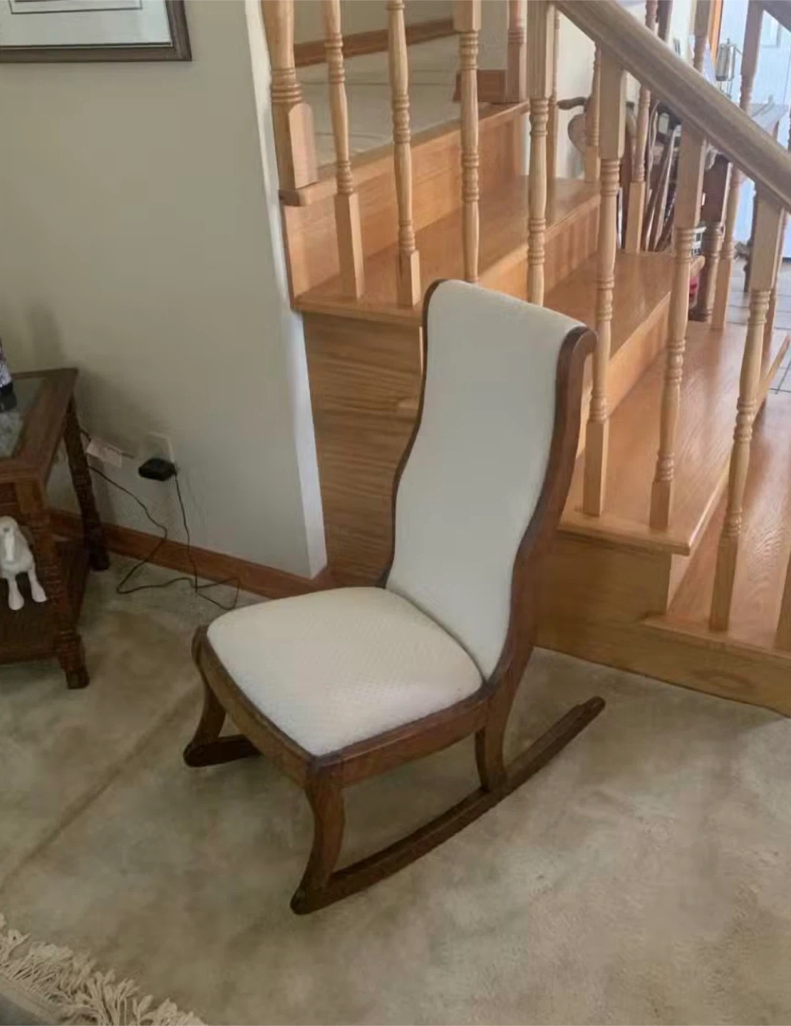 Wooden Rocking Chair with Cream Cushion