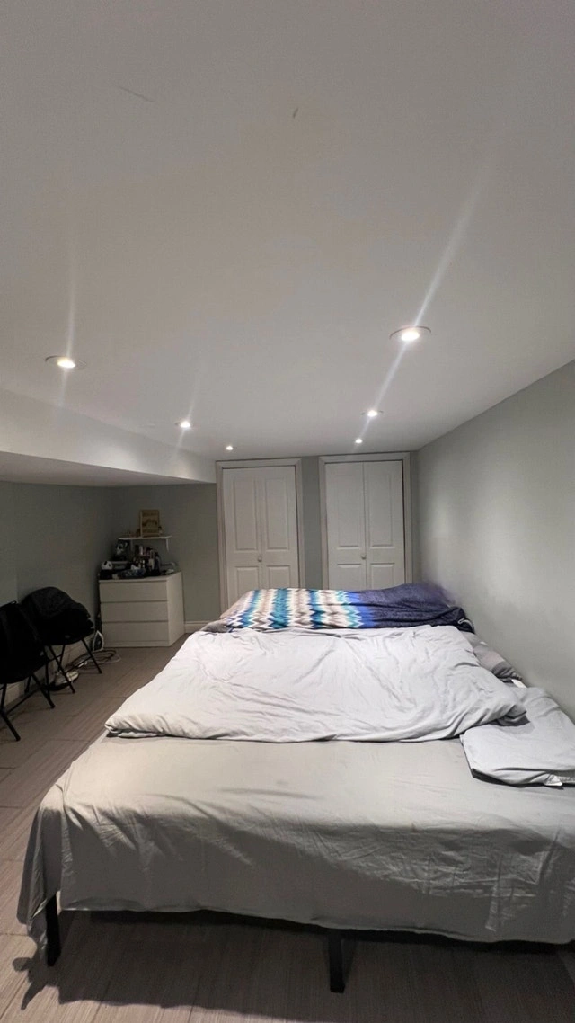 Available from May 1st, a private 1 bedroom in the basement for rent. It has a separate entrance and laundry is available. The rent is $800 for a private room, or $550 per person if shared. Parking is available for an extra $50. This basement has 4 bedrooms; 3 are already rented by working professional men. The available bedroom is huge with 2 closets, including one walk-in. The basement features 2 full washrooms and 2 fridges. The kitchen is shared. All utilities and unlimited internet service are included. Pictures with and without furniture are provided. Located near TTC at doorstep, walking distance to shopping, food stores, and restaurants. Main intersection is Albion and Islington. Students are welcome.