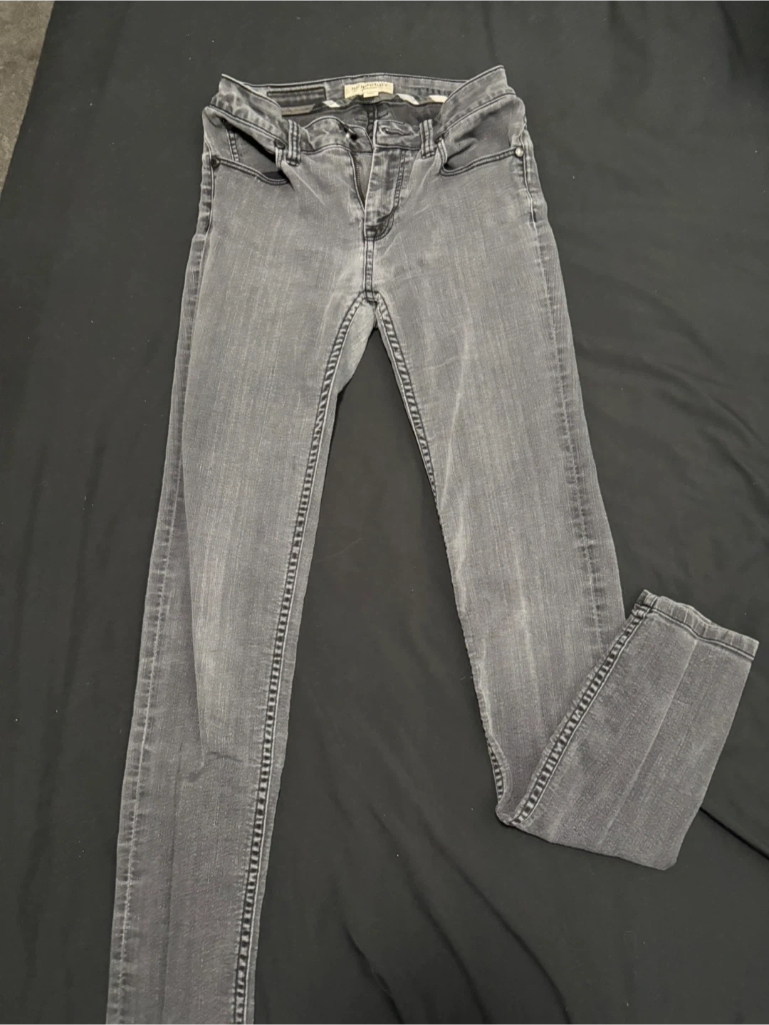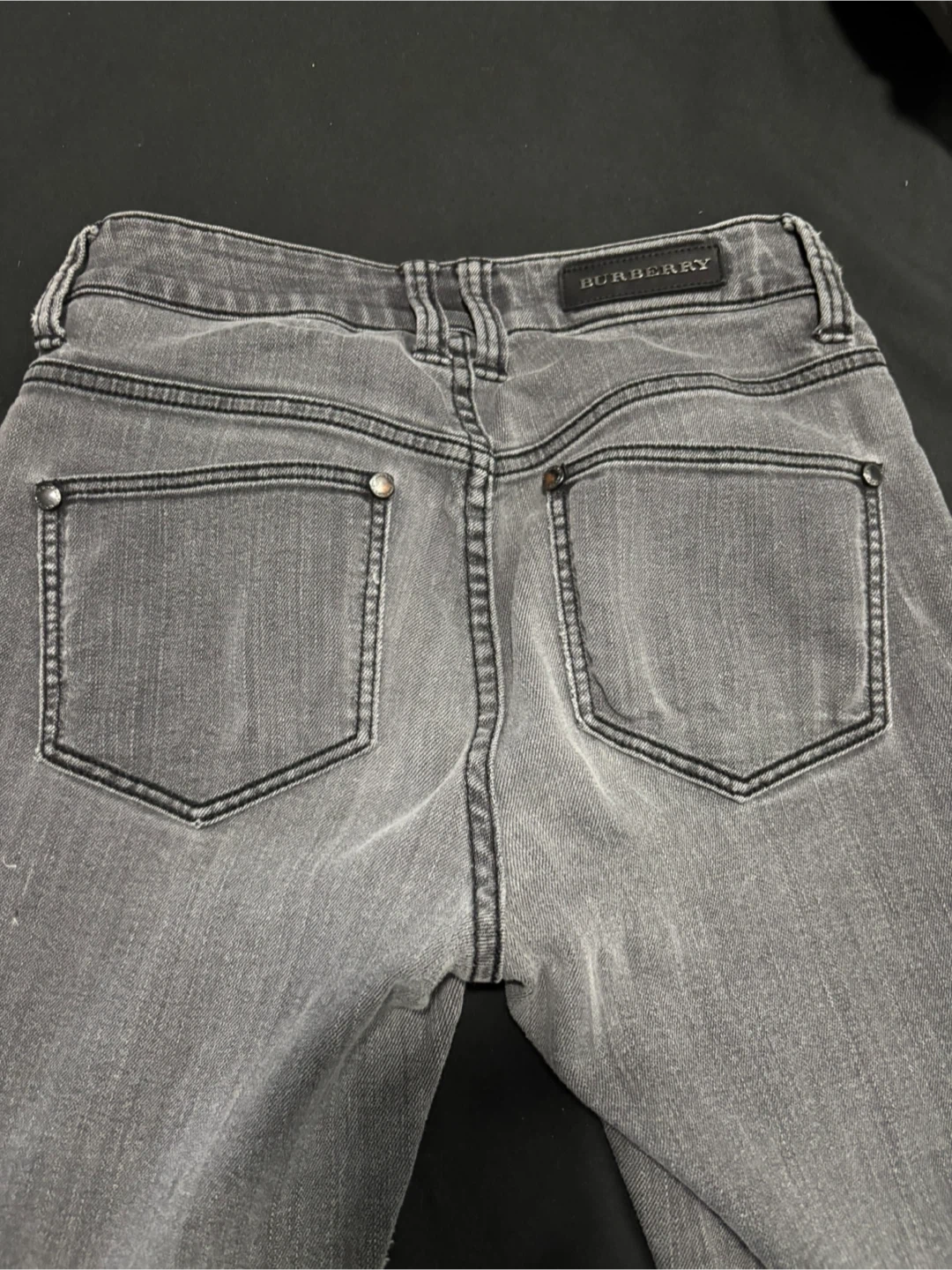 These are Burberry London skinny jeans in a grey wash. They're made from a comfortable denim material. These jeans are a stylish addition for everyday wear! Waist 26, 34 leg. Pick up in the Northend.
