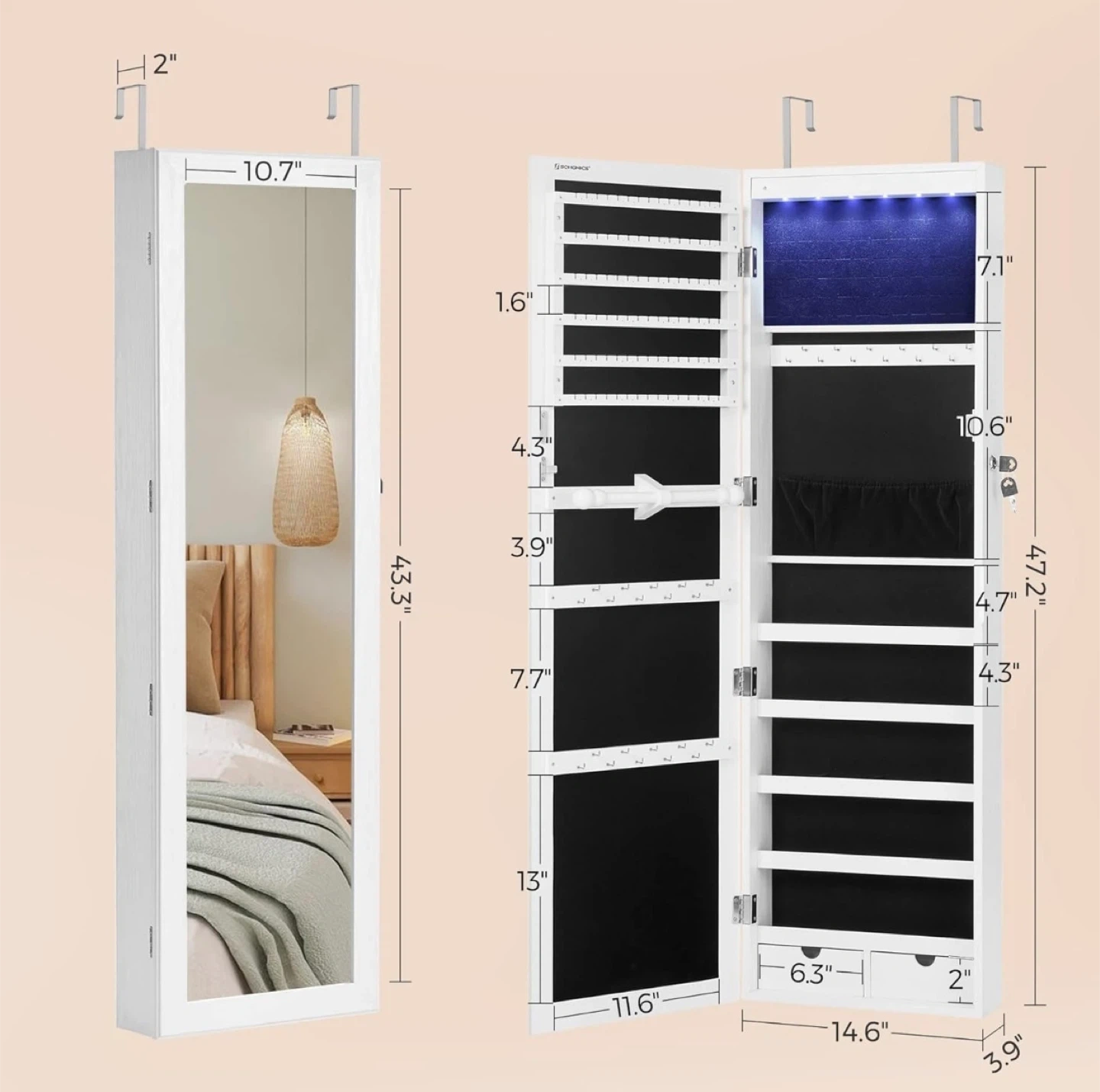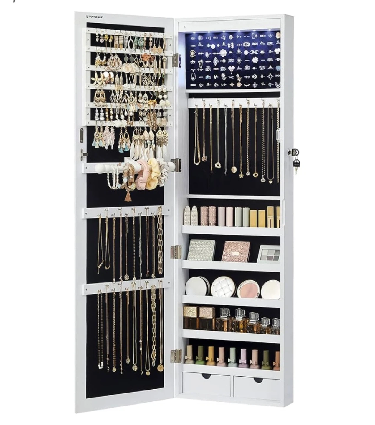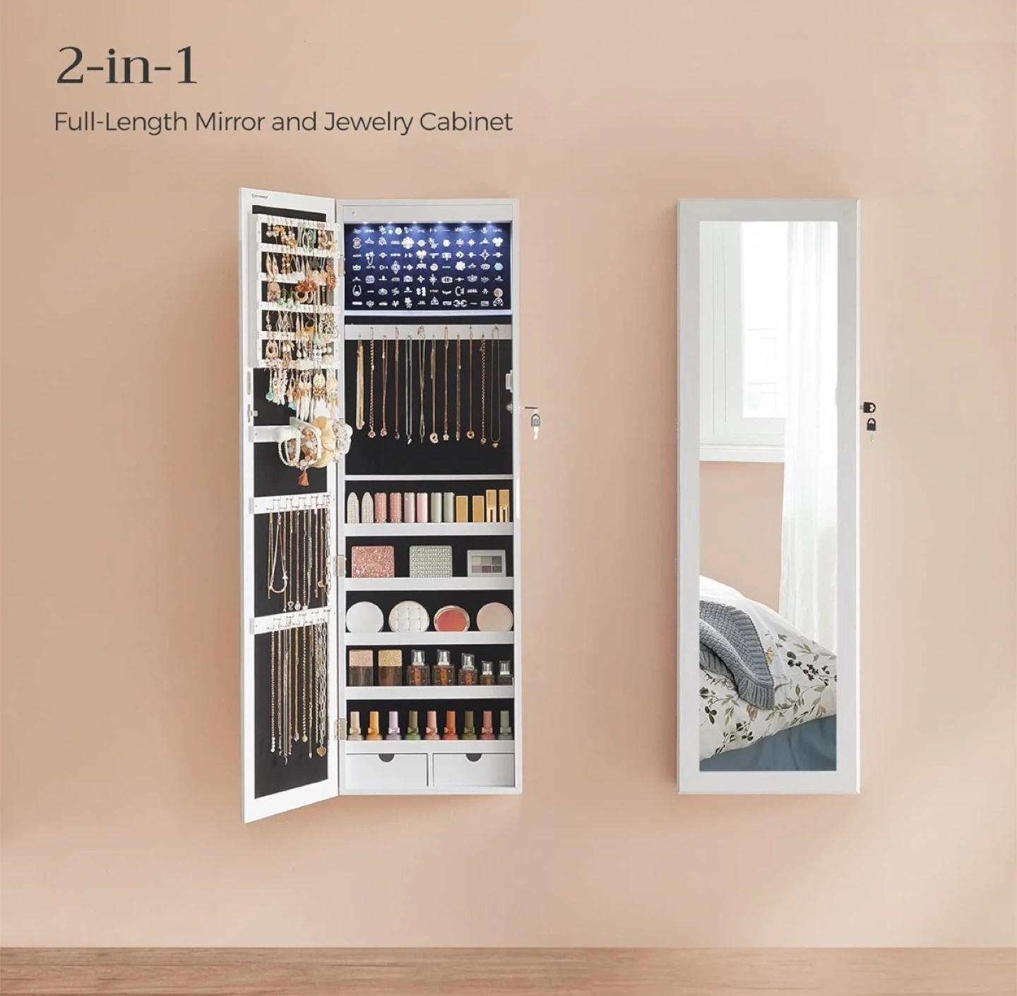 Upgrade your space with this elegant and highly functional SONGMICS mirror jewelry cabinet with LED lights — perfect for keeping everything organized and beautifully displayed ✨