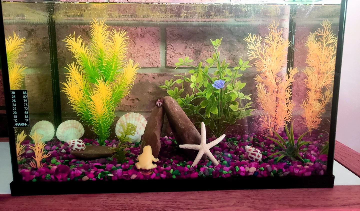 Beautifully setup tank that includes all the Accessories, Decor, and even Real Plants. All the prep work is done here already, so just take it home and enjoy right away.