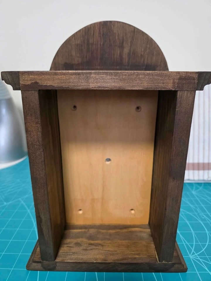 Folk Artist's Standing Clock Project to Finish. Stained dark brown. Three finished painted sides in a garden theme. Just needs to be varnished and you paint the clock face with pattern included. Removable panel just needs to be screwed into place. Needs a clock mechanism. 13'" tall x 9" wide x 5" deep. Would be really pretty in a sun room or cottage. Smoke/pet free home. Pick up in west end of Peterborough. $10