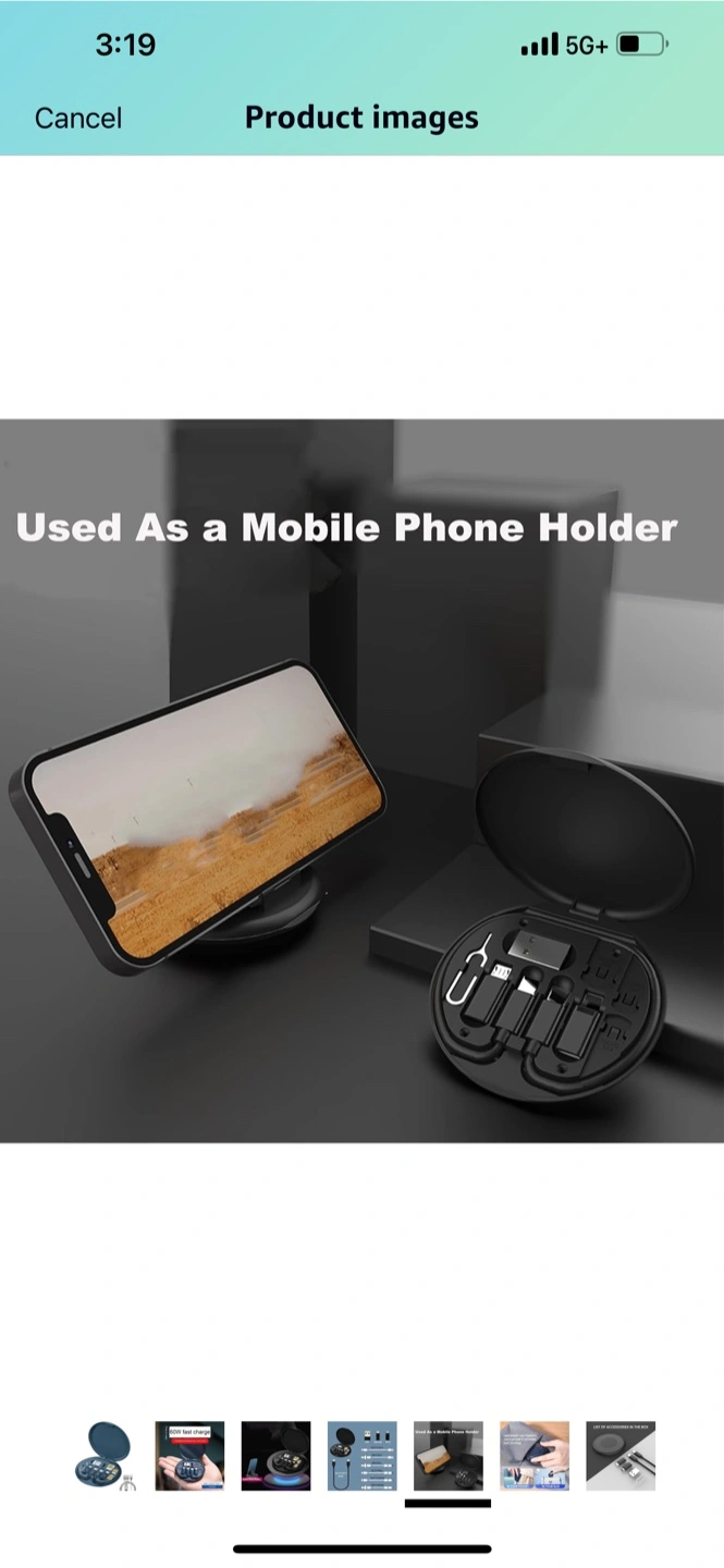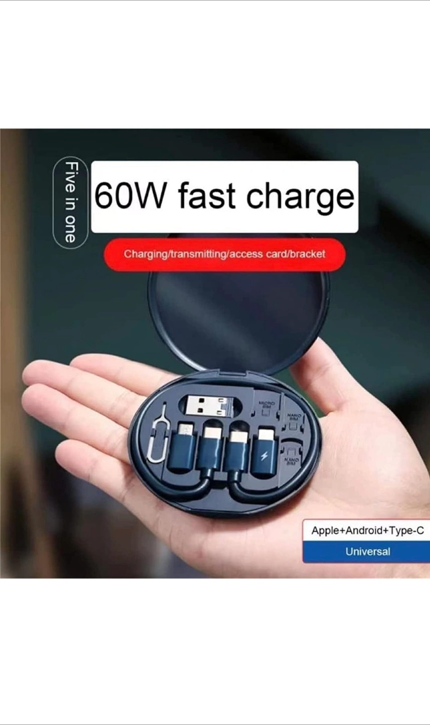 This handy charging kit includes multiple cable types and adapters in a compact case. It also comes with a SIM card ejector tool and a built-in phone stand. Great for travel or everyday use!