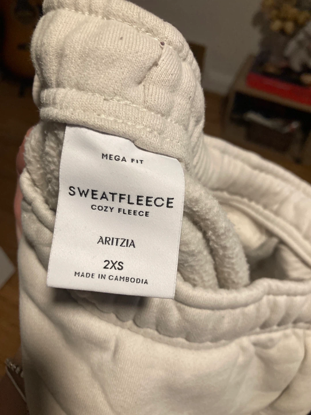 These are Aritzia Sweatfleece sweatpants in a size 2XS.