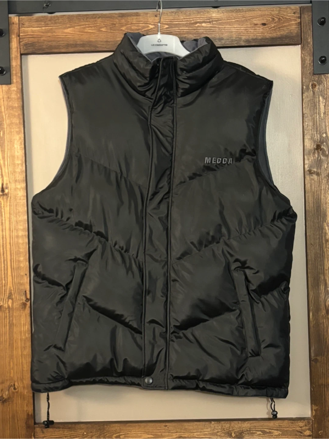 219Here's a black puffer vest from Mecca in size XL. The shell is made of 65% polyvinyl chloride and 35% cotton. The lining is 100% polyester. If it’s listed, it’s available Located in the Mission Gardens area Transcona.