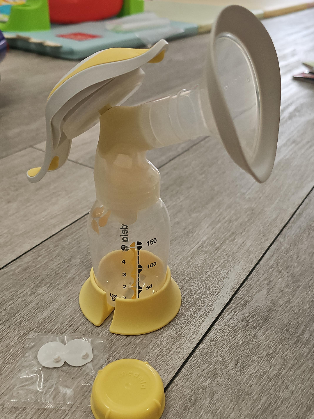 Selling a Medela manual breast pump. It's in great condition and ready for a breast feeding mom. It's easy on the wrist when you pump it. Giveaway Medela breastmilk storage and nursing pads.