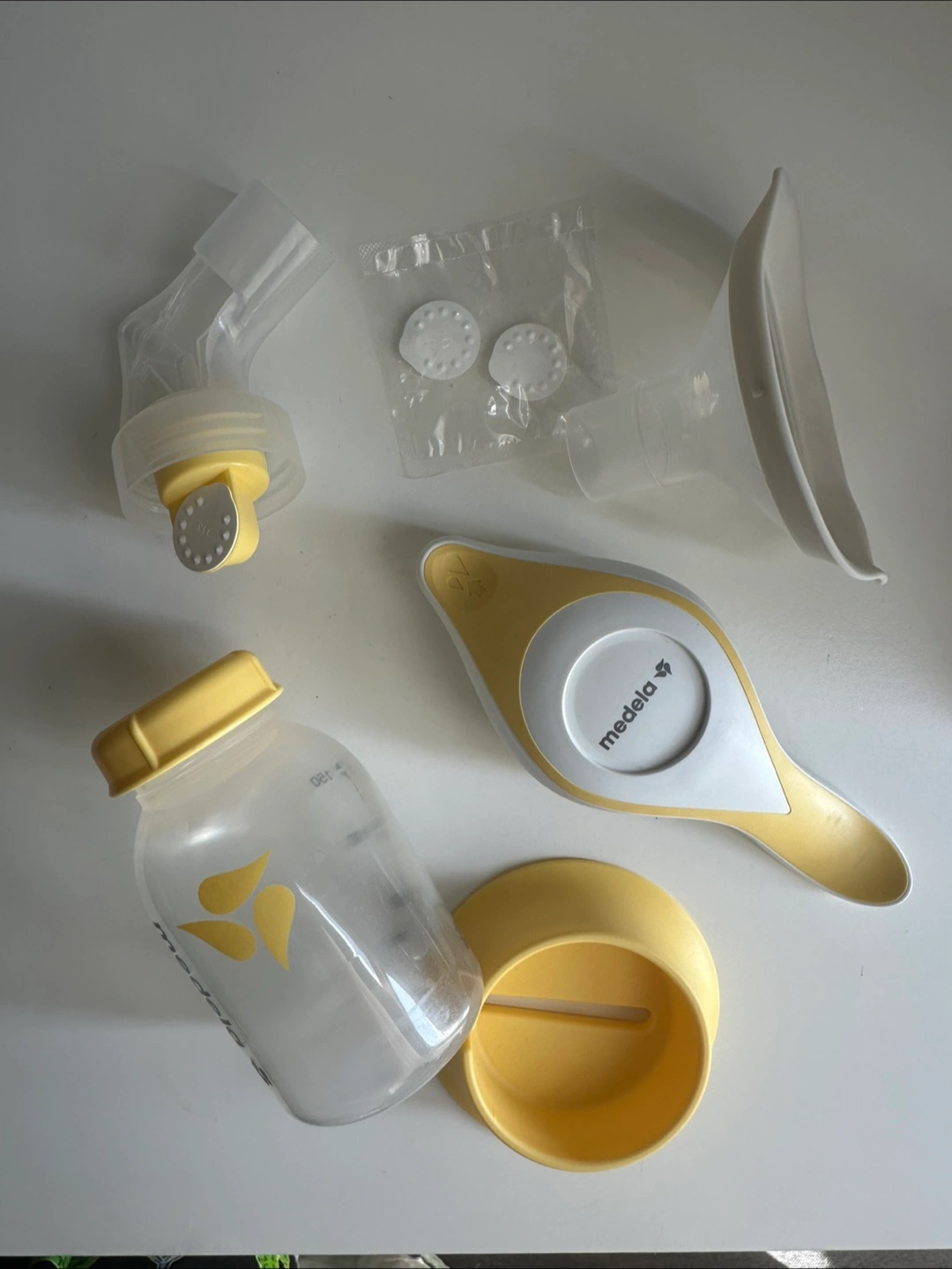 Selling a set of Manual Medela breast pump parts. Includes the breast shield, bottle, connector, and membranes. All parts are in good condition, sterilised and ready for use! Used lightly for 3 months