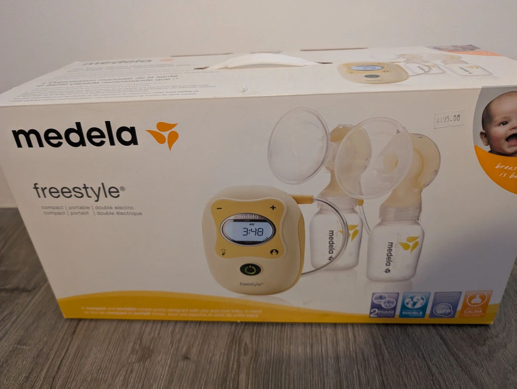 Selling a Medela Freestyle double electric breast pump. It comes with all the parts you see in the photos, including the bottles, flanges, connectors, tubing, power adapter, and cooler bag. It also comes with the original box! This pump is compact, portable, and designed for double pumping Cash pickup only at Richmond CF Centre