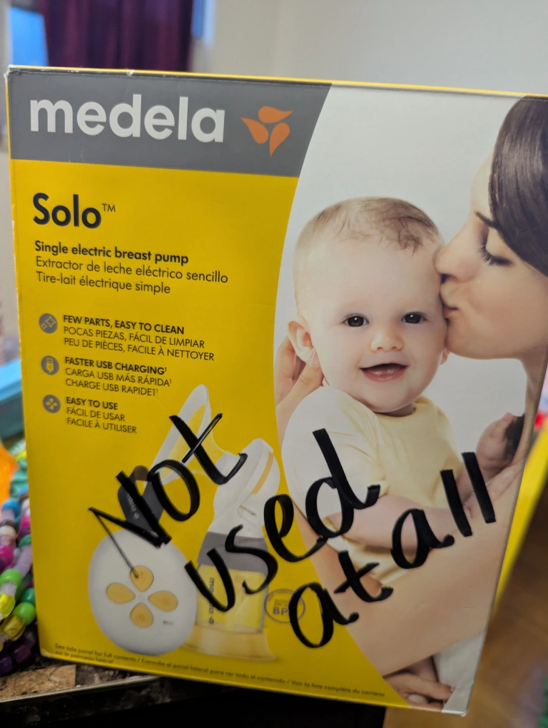 54Selling a brand new Medela Solo single electric breast pump! It's still in the box and has never been used. Few parts, easy to clean and faster USB charging