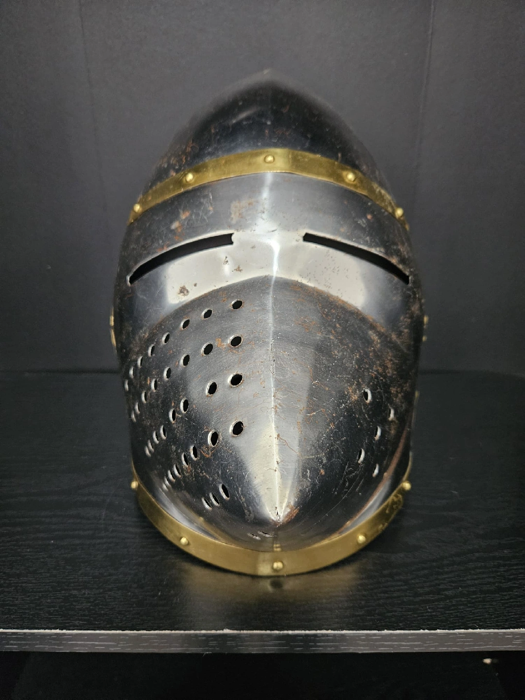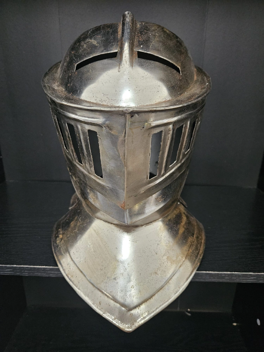 10Selling a collection of medieval helmets. These helmets show signs of wear and age, adding to their authentic look. Perfect for collectors or historical enthusiasts! price: $50 each