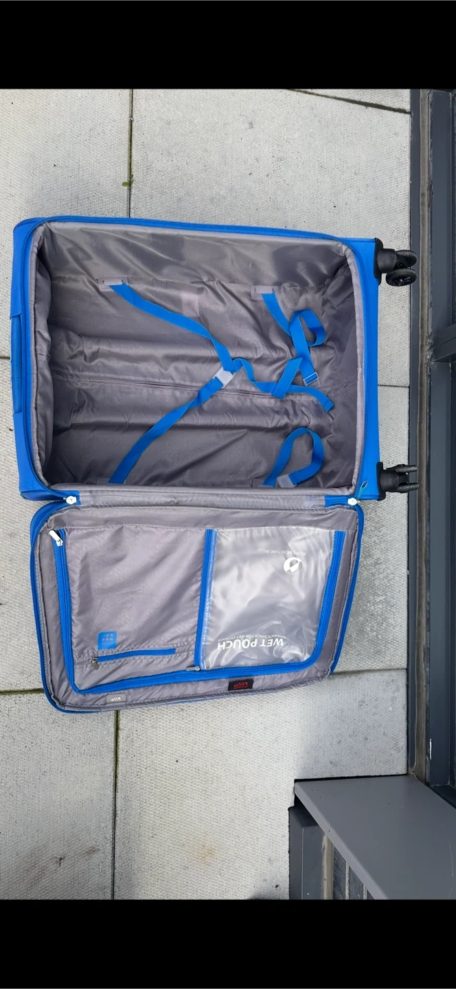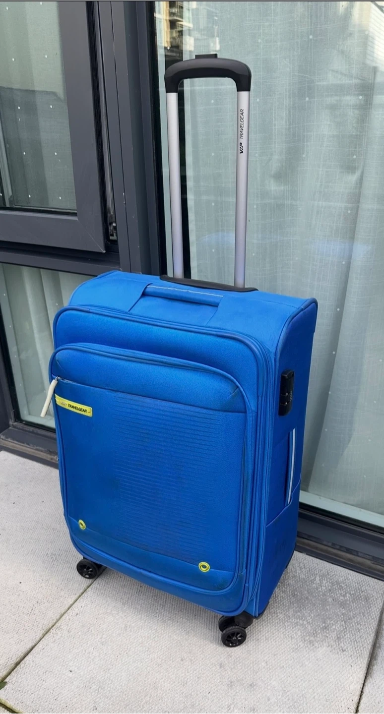 Medium soft-side expandable 8-wheel luggage in excellent condition. Lightweight and wheels run smoothly. Dimensions: 17”W x 24” H x 10”D Pick up only at Front St and Sherbourne St. Cash only please.