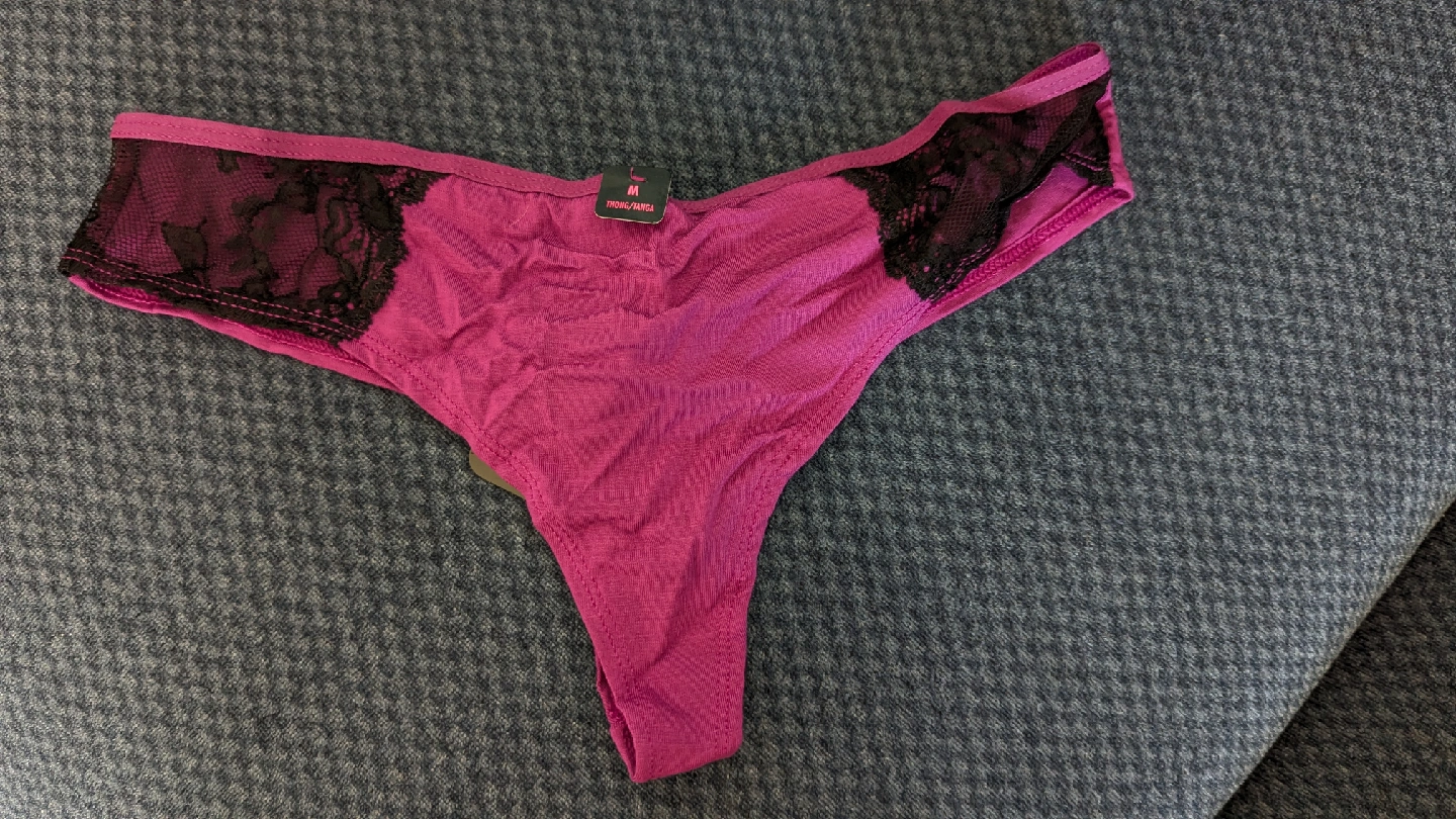 154brand new unworn medium but fits like a small tags still attached, la senza purple cotton type with black lace $4 firm