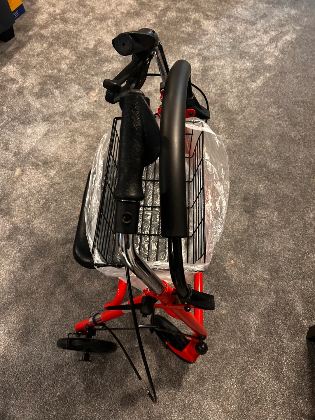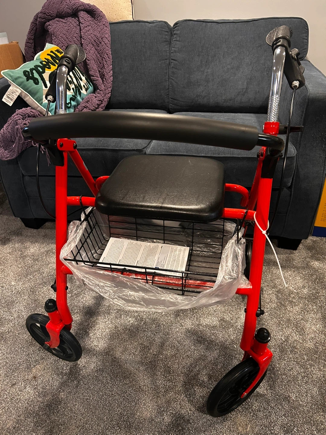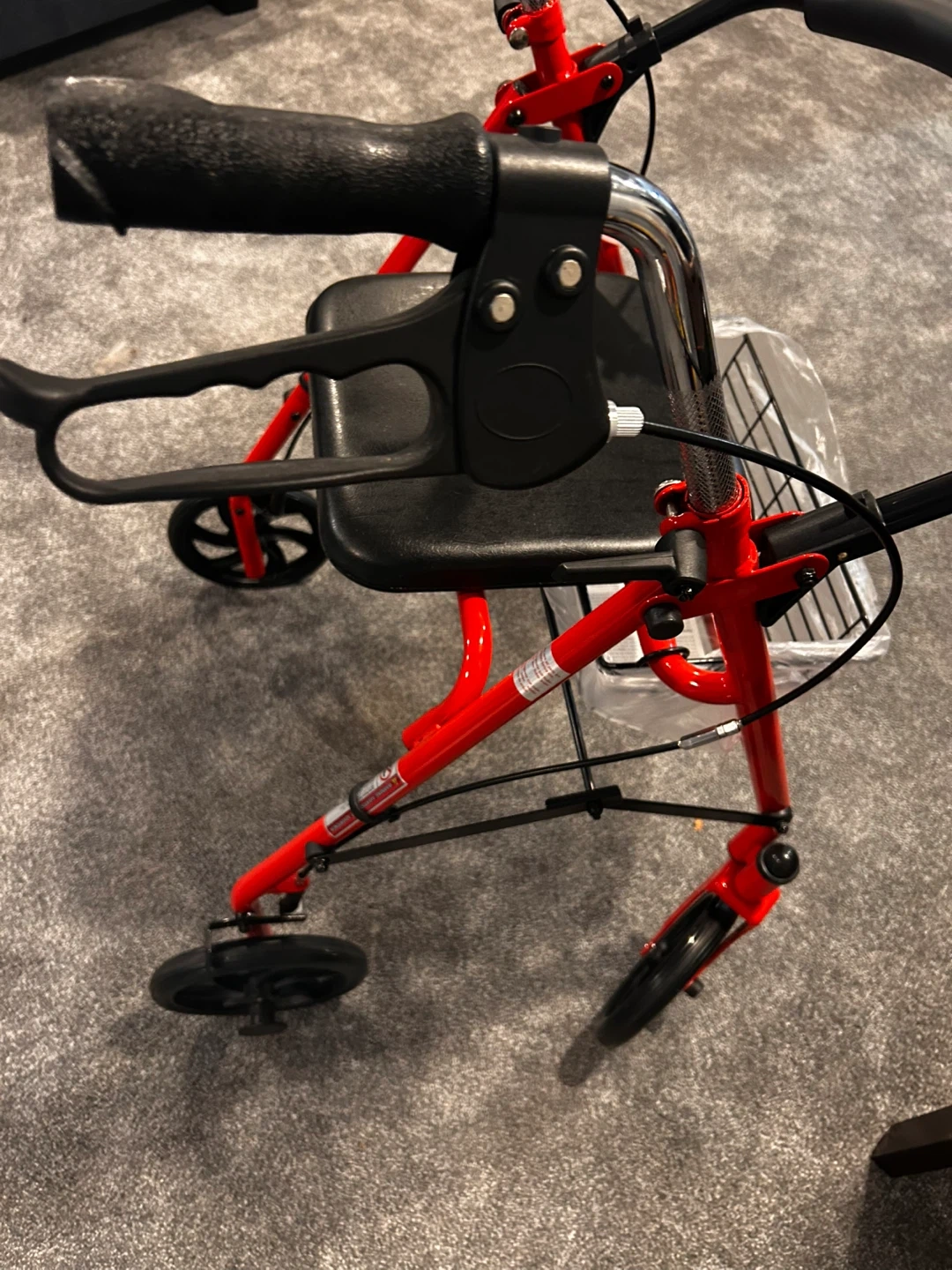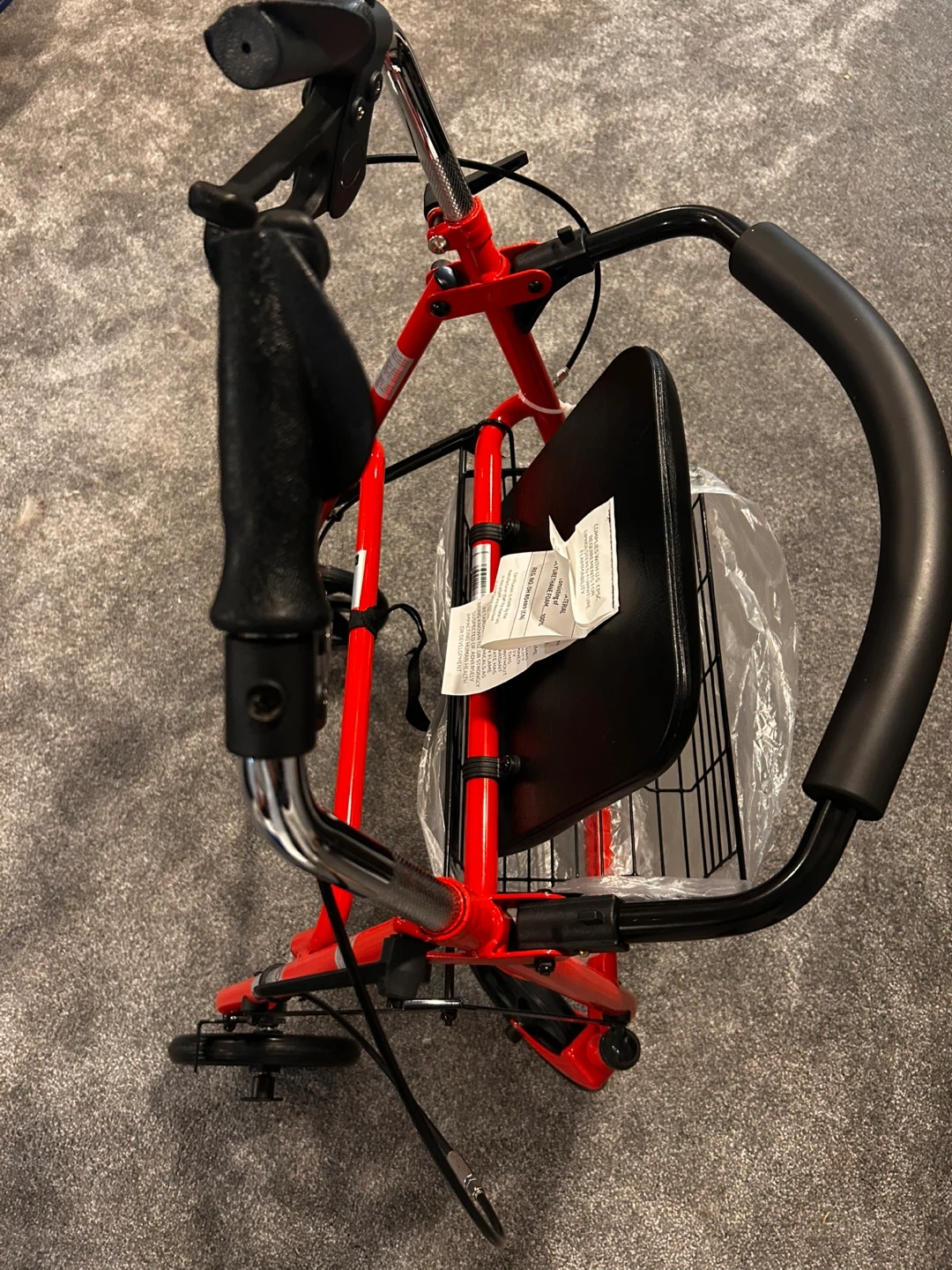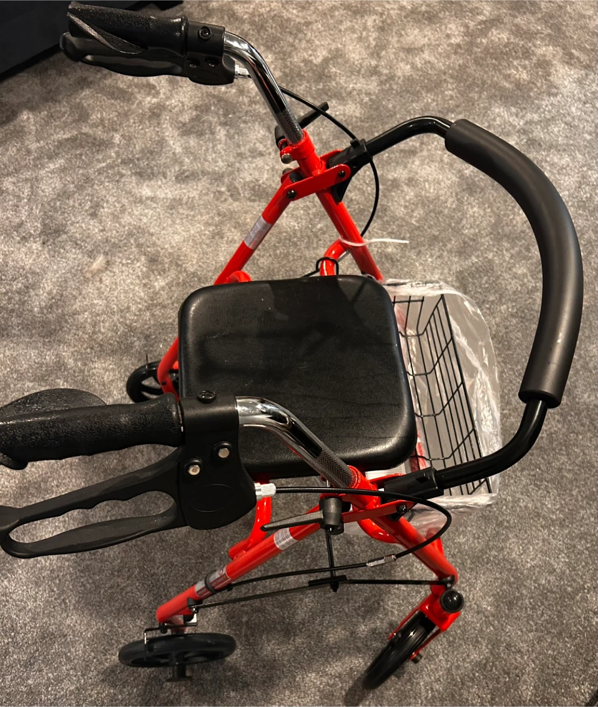 Medline Walker (rollator) steel, red with removable basket 8” wheels and adjustable height with seat and brakes