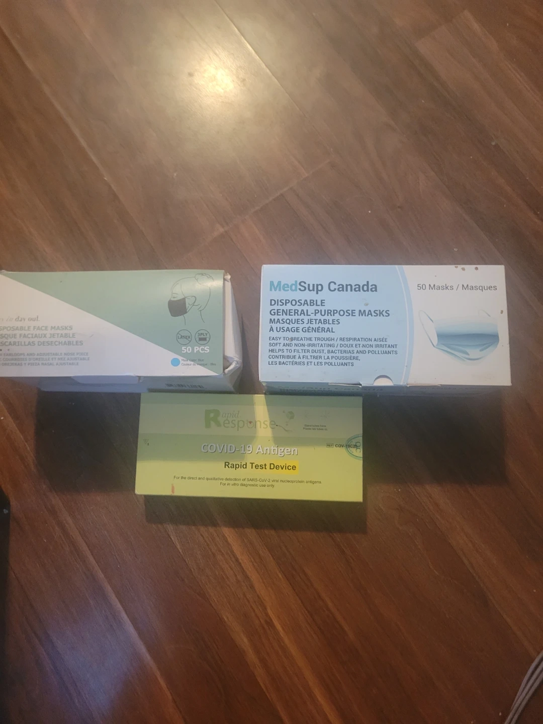 70Selling a box of MedSup Canada disposable general-purpose masks. The box contains 100 masks that are soft and non-irritating. They're designed to help filter dust, bacteria, and pollutants. Also 4 covid rapid tests.
