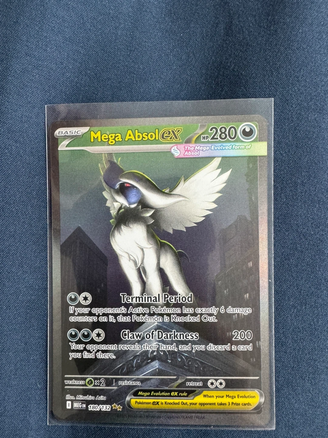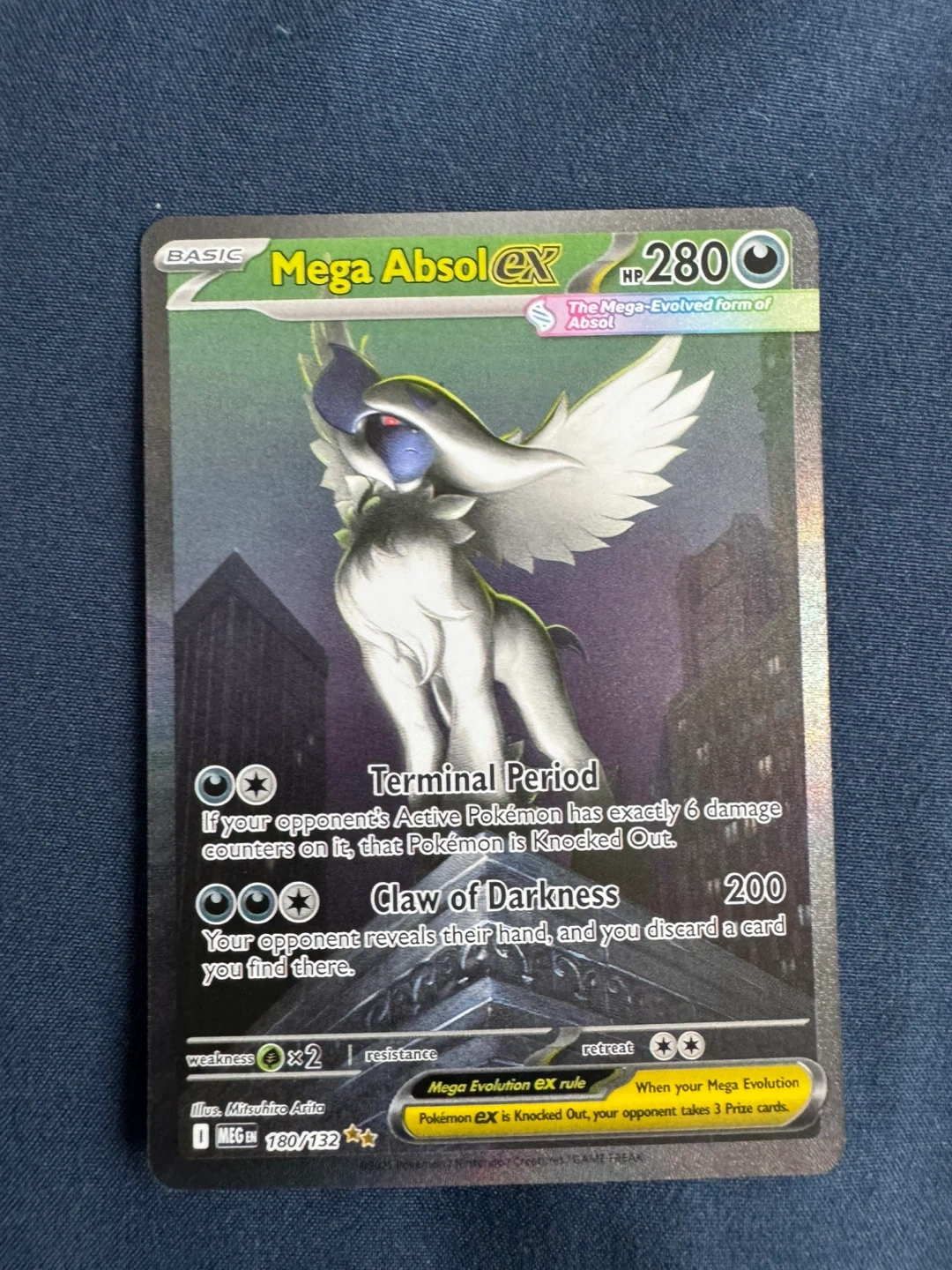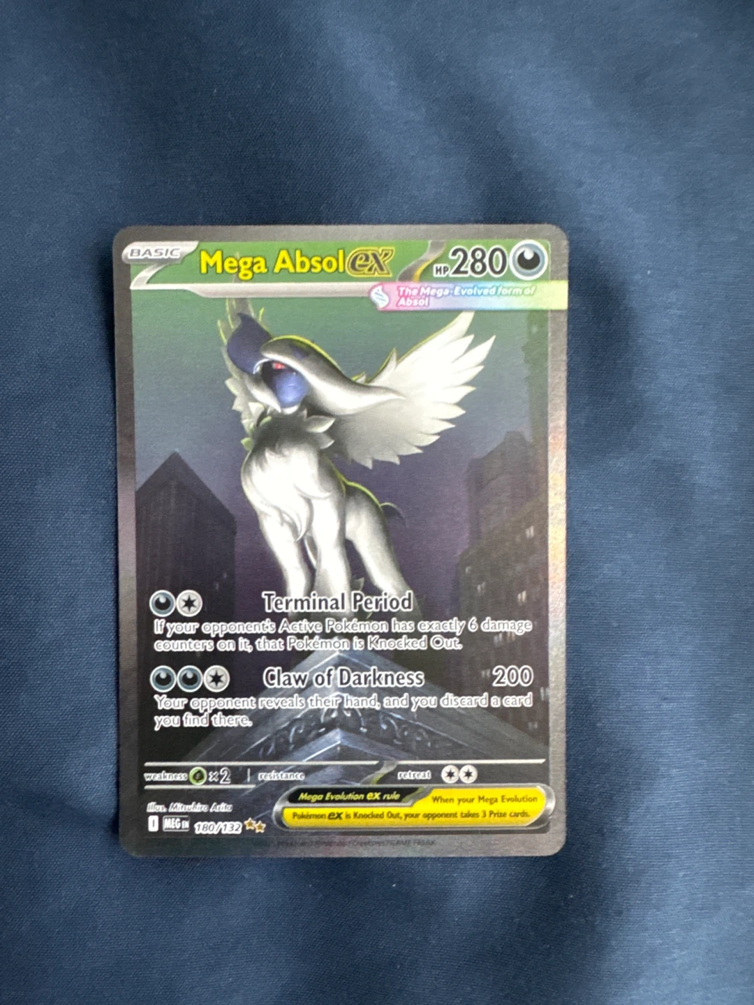 Selling a Mega Absol EX Pokemon card! It's in great condition and ready for a new home. A great addition to any collection! Had a little whitening on the upper right. Freshly pulled and sleeved up