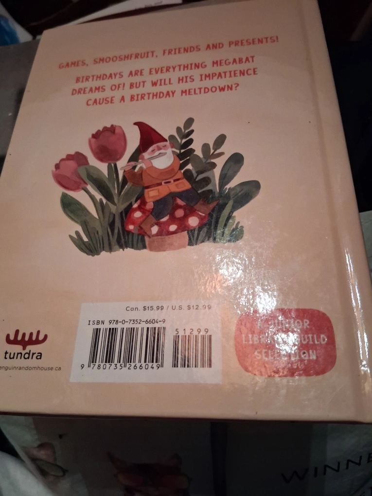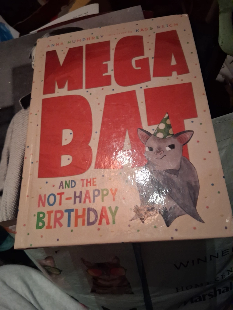 I'm selling a book called Mega Bat and the Not-Happy Birthday. It's a fun story about birthdays, friends, and presents! The book was originally priced at $15.99 Can / $12.99 US.