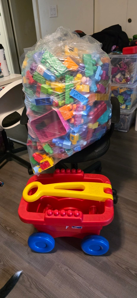 76Selling a large bag of Mega Bloks and a red wagon to put them in! Great for toddlers and young children to build and create with. Lots of fun for open-ended play.