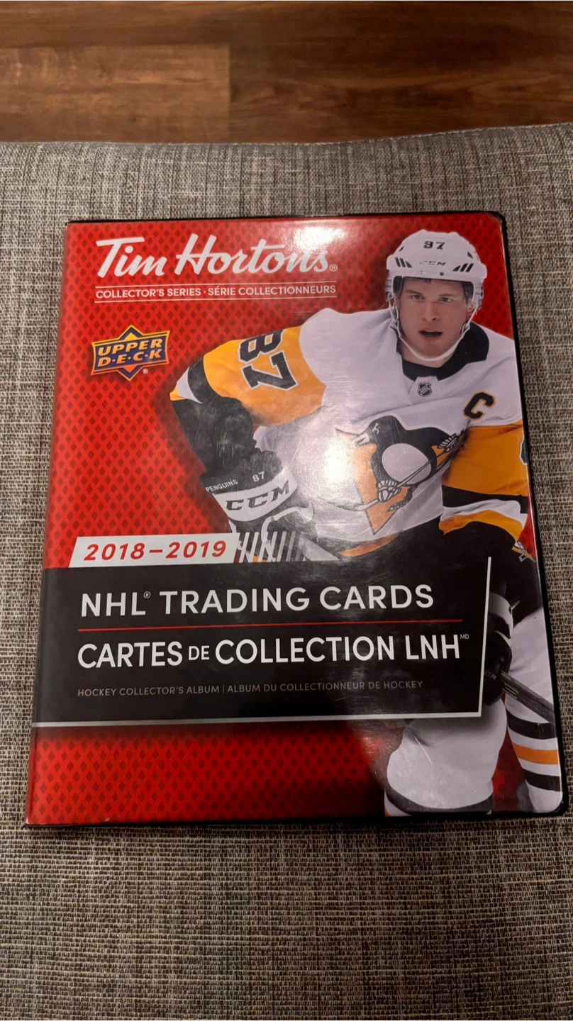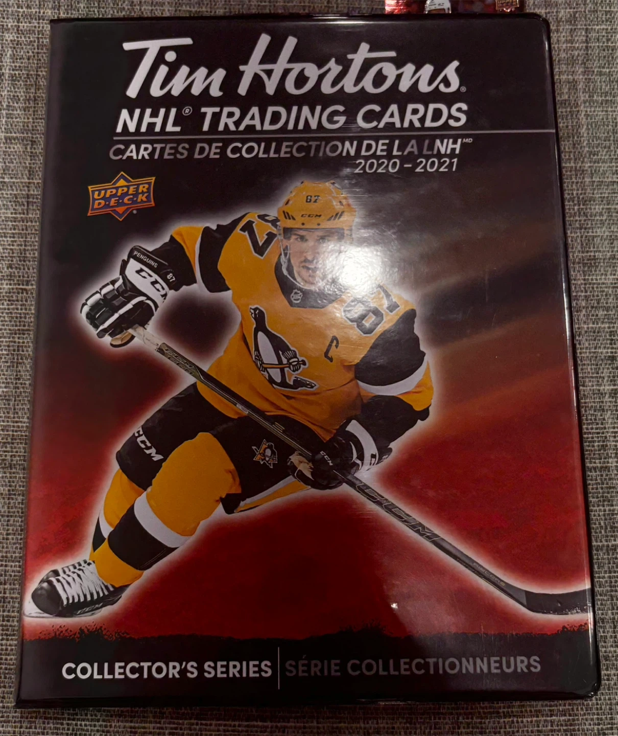 Collection of Tim Hortons NHL trading card collector albums. These albums are designed to hold your hockey cards from the 2017-2018, 2018-2019, 2019-2020, and 2021-2022 seasons. Keep your collection organized and protected!
